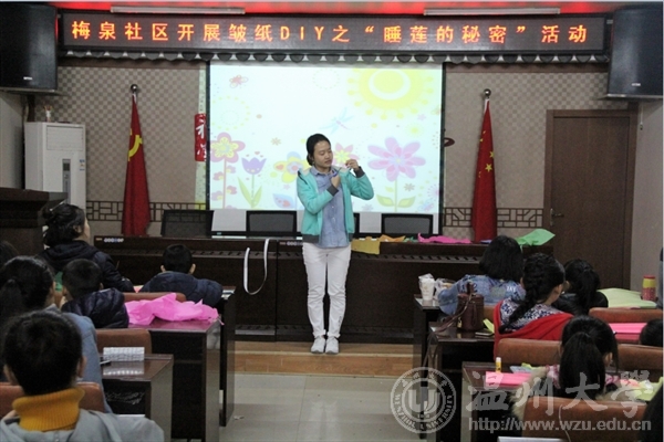 12月10日,3003新葡官方网站“艺家人”青年志愿者协会“载梦小舟”梅泉支教活动在梅泉社区开展第六课志愿教学,此次支教活动是本学期的最后一期,在课程结束后随即召开了结业典礼,青协梅泉基地负责人、温大志愿者们及小朋友们参加了结业典礼。 这周开展的支教课程活动主题为“皱纸DIY之睡莲的秘密”。主讲志愿者是美院16级美术师范班的张蕾同学,首先她带领小朋友们了解制作步骤以及制作过程中需要注意的问题,接下来就是小朋友们在志愿者的协助下跟随张蕾同学的解说来制作有趣的睡莲啦!小朋友们有条不紊地跟随着主讲人的讲解,将睡莲的各个部位都完成了,将其组装成一朵朵幽静而神秘的睡莲,真是魅力无穷,让人不得不感叹小朋友们创意无限! 支教活动结束后便是结业典礼,“艺家人”干事汪成龙同学的发言拉开了此次典礼的序幕,首先是由3003新葡官方网站的李雪涛老师发言讲述了对梅泉支教活动的大力支持与期望,同时对每一个志愿者的付出表达了赞许与欣赏:“我相信每一位来到这里的志愿者所付出的是一份不求回报的爱”。随后是梅泉社区的负责人发言表示对我们温大美院青协的支教活动给予极大的支持和赞同,相信志愿者们的热情犹如阳光,照暖每一个小朋友的心,带着他们发现艺术的美!最后,结业典礼的圆满结束也预示着下学期将会有完美地开展,让我们期待吧! 图/文:鲍彬彬