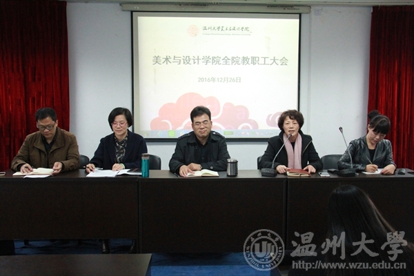 2016年12月26日下午,新葡官网在2B4001多功能厅召开期末全体教职工大会。院长李运河,党总支书记张丽萍,副院长谢子静、王薇,党总支副书记杨振海出席会议,会议由张丽萍主持。会上,以无记名投票的方式对学院领导班子进行了民主测评,校党委组织部的老师组织并监督了整个投票过程。李运河院长对本学期学院主要工作做了回顾总结。在教学工作方面,新葡官网顺利完成了迎接“本科教学审核性评估回查”的工作,评估组在参观了新葡官网与风笛服饰合作建立的服装设计专业省级教学实践基地和学生创新创业团队后给与高度评价;在科研工作方面,教师成功申报多项国家级省级教科研项目,在一级刊物发表论文多篇,美术学专业老师分别在国内外举办了个人画展,多人参展国家级省部级美术作品展并获奖,科研成果无论从数量上还是质量上均超越了去年同期;在学科竞赛上,新葡官网成功承办第八届浙江省高校工业设计竞赛,受到全省几十个参赛院校师生的广泛好评,树立了很好的口碑;在服务地方工作方面,“温州时尚学院”参加温州时尚展,得到了张耕市长、李校堃校长、林娟娟书记等领导的充分肯定;与瓯海区联合设立的温州时尚产业创新研究中心,正式挂牌入驻瓯海时尚智造小镇;与红蜻蜓、风笛、四目、方氏等校企合作项目也逐一推进。他指出,在肯定可喜成绩的同时也要看到学院在某些方面仍存在不足,比如科研项目申报的数量层次、加快国际化的步伐等方面新葡官网还需继续努力。谢子静、王薇、杨振海分别就各自分管工作做了学期总结汇报,并对期末以及寒假工作作了具体部署。学院教学督导组组长黄良老师就本学期的督导工作做了汇报。他对具有严谨治学态度和高质量的教学效果的教师给与了肯定和赞扬,也提出了老师们课堂教学方式方法及对听评课不够积极等问题。 张丽萍做总结发言。她充分肯定了一年来学院在各个方面取得的成绩,对做出特别贡献的老师提出了表扬。她指出,从学院党总支年度考核工作的各项数据可以看出,党员成为各项工作的核心骨干和主力军,在教学、科研、管理一线充分发挥了党员应有模范带头作用。她还强调在学期末要继续严守良好教风,期末考试要严肃考风考纪,做好育人工作中每个环节的尽职尽责。她希望全体教师齐心协力、众志成城,为学院抓住机遇快速发展做出每个老师应有的贡献!