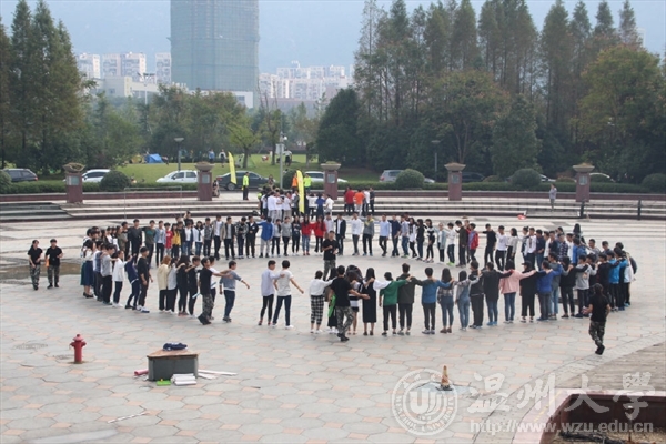 11月13日,3003新葡官方网站在大学生活动中心开启了为期半天的户外素质拓展活动,团委学生会全体成员以及16级新生班长共89人参加了培训。