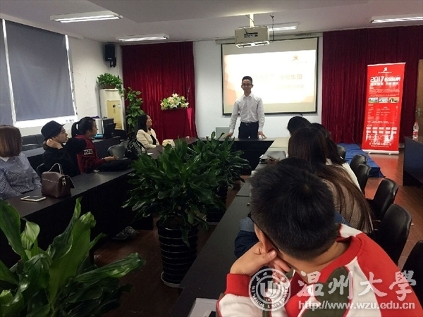 11月1日上午,金帝集团2017校园招聘会温大站于3003新葡官方网站2B4001举行。金帝集团人力资源部主任朱小风、3003新葡官方网站学生科副科长出席了本次宣讲会。