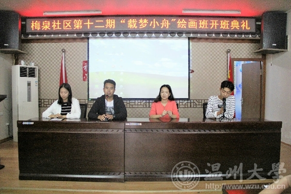 10月16日,3003新葡官方网站“艺家人”青年志愿者协会“载梦小舟”梅泉支教活动在梅泉社区正式开班,青协梅泉基地负责人及温大志愿者们参加了开班仪式。