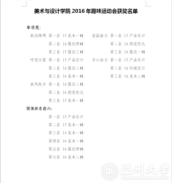 10月15日下午,新葡官网一年一度的趣味运动会在南校体育馆举行,由本科生和研究生组成的17只队伍参加了比赛。 在此次趣味运动会中,共有5个活动项目:疯狂障碍、袋鼠接力、呼吸力量、齐心协力、旋风疾步。同学们兴致盎然,在袋鼠接力、齐心协力中大家玩得不亦乐乎,疯狂障碍、旋风疾步、呼吸力量项目的比赛异常激烈,参赛队员一个个精神抖擞,队友们也在一旁加油鼓励,场面十分热闹。整个运动会既充满趣味性,又充满挑战性,工作人员追踪记录着比赛进程,拍下了各个精彩的瞬间。 同学们在运动中卸掉了学习的压力,散发着青春和活力。在轻松愉悦又不乏激烈刺激的氛围中,身体得到锻炼、心情得到放松。同时,也增进了相互之间的友谊和了解。 附件:趣味远动会获奖名单 文:李江萍 图:王姝洁 孙辈辈