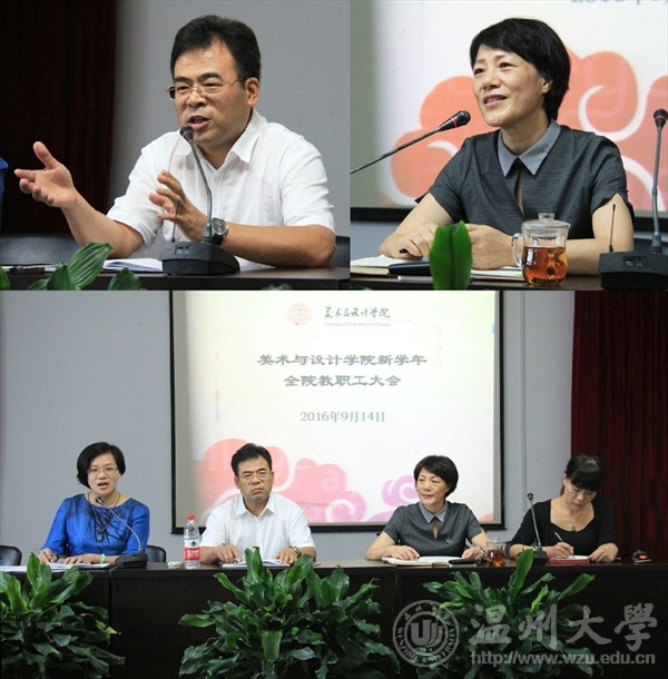 2016年9月14日下午,新葡官网在2B4001召开新学年第一次全体教职工大会。院长李运河、党总支书记张丽萍、副院长谢子静、王薇出席会议,会议由张丽萍主持。会上,张丽萍代表学院领导班子对全体教职工致以教师节、中秋节的问候。她结合党总支建设,围绕本学期重点工作做具体部署。她指出,一要加强基层党组织的建设,继续夯实基层党组织的建设基础,继续坚持党员学习教育,配合学校做好3003新葡官方网站第二次党代会的组织筹备工作;二要加强学院文化宣传工作,借助各类平台,结合学院重大活动,全方位宣传学院的建设发展情况,注重宣传的程度和效果;通过师德师风、融艺优品创客空间、学院宣传册和整体形象打造等,继续做好做强学院的品牌特色活动;三要加强学院的凝聚力建设和精神文明建设;四要把握意识形态工作;五要组织开展大学生创新创业教育,充分发挥学院的主导作用,扩大创业教育的受益面,弘扬创新创业精神;六要加强学生思想政治教育和管理,促师风、抓学风;七要重视毕业生和校友工作,重视第三方调查结果,促进调整人才培养方案,不断提高教育教学质量;八要抓好平安校园的建设工作,树立安全高于一切的意识。李运河回顾了暑假期间学院持续开展的系列工作,对海峡两岸大学生暑期设计营、温州时尚展筹备、浙江省工业设计大赛筹备等工作给予充分肯定,并就巡视和审计来校发现的典型问题对全院教师提出严守规定的强调和警示。针对学院在“十三五”期间的发展方向,结合学院的实际建设情况,他提出了几点思考。首先是定位问题,他认为找准定位才能找对方法和出路。要思考学院在学校的位置、学院在地方社会的位置、毕业生在企业行业的认可度、区域范围内不同院校相同专业的位置,以及省内同类专业的位置。同样,要思考专业在本学院的位置以及老师在本专业的位置。明确优势,错位发展,有为才有位。其次,关于学院人才培养目标的定位,他提出“强实践、能创新、富有艺术素养和创业能力的应用型人才”,并就“实践”和“创新”做了详细阐述。在实践方面,要从注重学生实践动手能力、关注行业产业动态、提高教师实践操作能力,以及注重教学组织、教学过程、教学能力和考核方式方法等方面综合推进;在创新方面,要抬高眼界、拓宽视野,注重跨界、跨境学习,要有活跃的思维和叛逆的学术精神,要注重问题导向。第三,在科研方面,既要充分自信,又要有敢于实践的勇气,要在服务地方中凝练课题,在挖掘地方传统文化中研究课题。 谢子静、王薇分别就分管的教学、科研、实验室等工作做了安排和部署。(图/冀千里 文/李丽)