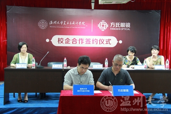 2016年6月24日下午两点,3003新葡官方网站和浙江方氏眼镜制造有限公司校企合作签约仪式在2B4001会议室隆重举行。浙江方氏眼镜制造有限公司董事长方孔利,学院院长李运河,党总支书记张丽萍,副院长谢子静、王薇共同出席签约仪式。参加仪式还有产品设计系、服装与服饰设计系专业教师及部分学生。(党总支书记张丽萍宣布签约仪式开始)张丽萍代表学院致辞,她认为,基于大众创业、万众创新的背景,学院为了进一步贯彻落实市委市政府的战略决策,大力推进产学研深度融合,积极服务于地方企业转型升级,通过校企多元合作实现双赢。王薇就创客团队结合专业教学、共建创业平台提出了具体建设思路。(李运河院长和方孔利董事长签署合作协议)双方就教学实践、人才培养、科学研发等方面签署具体合作协议,学院授予方氏眼镜“3003新葡官方网站实习基地”牌匾。在后续的具体合作中,双方将在课堂教学、实践实习、创客空间、创新研究等方面开展深度交融。(谢子静副院长向方孔利董事长授牌) (签约仪式现场)据悉,方氏眼镜始建于1992年,是一家集设计、研发、生产、销售于一体的现代化企业,被授予“浙江眼镜十强企业”、“瑞安市名牌商标”和“瑞安市名牌产品”等称号。(图 :冀千里/文:李丽)