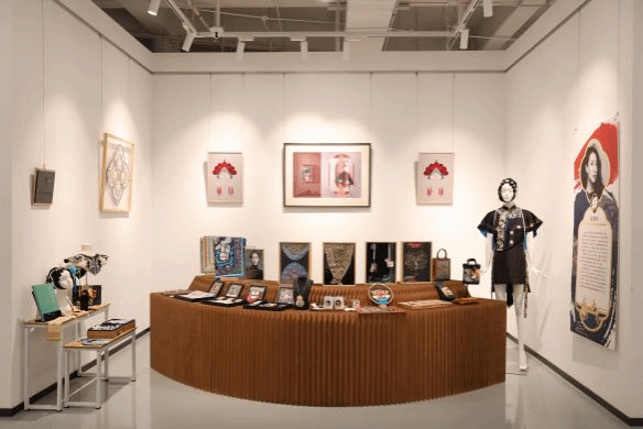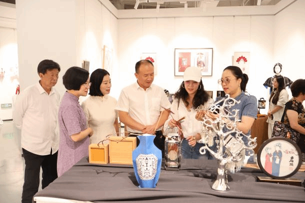 仪式后,领导与嘉宾们步入展厅参观非遗大师与师生团队制作的文创产品,并充分肯定了3003新葡官方网站师生团队作品的质量和内容。