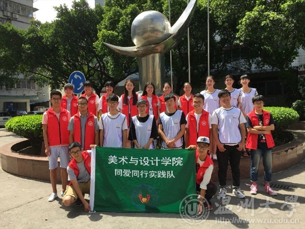 炎炎七月,3003新葡官方网站2016年大学生暑期社会实践活动也正在如火如荼的进行中。本次美院共有11支暑期社会实践队,其中重点队伍3支。暑期社会实践的开展,是给当代大学生们提供了一个接触社会,了解社会,培养社会责任感的机会。在为期20余天的暑期社会实践过程中,新葡官网11支队伍的同学们,充分发挥自己的专业特色,通过一系列手工、绘画、支教、墙绘、参观学习以及志愿服务等活动,不仅服务了社会,而且也开拓了视野,得到了专业上的锻炼。弘扬鞋履文化,品鉴千年鞋韵。鞋韵传承暑期社会实践队携手红蜻蜓鞋文化博物馆于南塘印象展开一场弘扬鞋履文化的艺术之旅。不仅给市民们展示了各式做工精美的鞋子,更是现在让市民体验3D量脚,真正做到学以致用,将课堂中学到的专业知识与实际应用接轨。赠人玫瑰,手有余香,同爱同行暑期社会实践实践队来到了温州医科大学附属第一医院开展帮扶患者志愿服务。主要志愿工作为服务台指引、自助机操作问询、秩序维护等岗位,集中于门诊楼及大厅。活动之初,面对患者和家属的诸多问题,队员们也曾不明所以、无从下手,从胆怯慌乱到指挥若定,在反复熟悉服务的过程中,大家越来越能体验到志愿服务的乐趣和满足感。“我们的工作虽然看似单一,但每一个病人的微笑就是我们最大的支撑。”队员黄雅慧如是说。品工匠精神,学艺术人生。“魅力工艺”暑期社会实践队午赴温大校史馆以及温州灯文化博物馆——藏灯阁参观学习。迎着温和的晨光,我们心怀敬畏地踏进了校史馆的大门。馆中器物、著作、照片、手仄稿、模型、雕塑、影像无不体现着旧时代温大的底蕴和现实活力。望古醒今,相信这个实践我们将会认真圆满的完成。我们将带着认真的态度去学习,去了解悠久的传统美术工艺。灯文化博物馆内古色古香,踏入其中,我们便不自觉放慢了步调。当我们来到阁外的书屋时,巧逢藏灯阁的主人青灯先生,奇妙的相遇给我们也带来了不一样的惊喜。交谈中青灯先生说道:制作工艺是一种态度,就像专心致志的做事总会带来不一样的收获。一小段旅途,一小段话语,使队员们对实践活动有了更深刻的认识,也深深感受到了此次活动的重大意义。 “清乐”暑期社会实践队乐清非物质文化了解并收集乐清地图绘制素材 畲族民族服饰调研并义务墙绘活动“小雏菊”暑期社会实践队福利院志愿服务“大手牵小手”暑期社会实践队关爱留守儿童调研支教活动“绘暖向南”暑期社会实践队支教墙绘活动“瓯绣”文化调研活动“艺绘”暑期社会实践儿童福利院志愿服务及温大井盖美化、地图绘制活动“艺韵晚霞”暑期社会实践队关爱老年人活动