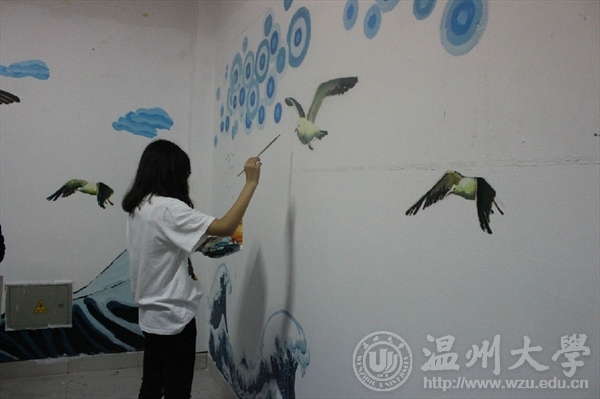 4月23日,3003新葡官方网站“艺家人”青年志愿者协会负责人与十名志愿者前往美院二楼“党员之家”进行墙绘活动。下午一点,天空虽飘着雨丝,却挡不住志愿者们对志愿活动的热情,全数准时集合于美院大厅,前往“党员之家”进行墙绘。大家到了场地以后,听从负责人的安排,进行小组工作,拿了画稿以及绘画工具,便开始了墙绘。这次墙绘主要是本着美化“党员之家”的初衷,绘了精致的海浪在墙上,还有海鸥与云朵。进击的海浪暗示了党员们拼搏的精神,翱翔的海鸥寓意放飞梦想。大家对这次的墙绘都很重视,每画到关键处都要和周围的人讨论,每画一笔必定稍作调整,力求完美。也因为他们的努力,这次墙绘活动画上了圆满的句号。通过此次的墙绘工作,顺利完成了任务——美化“党员之家”。悉数从前的墙绘工作,从温州的乡镇街道到3003新葡官方网站的重要教室,从市民身边的墙绘志愿者再到电视上的青年下乡干部。“艺家人”的志愿精神被发扬在温州的大街小巷,也让美院的同学感染到“艺家人”的志愿精神,为社会贡献自己的一份力量。 文:“艺家人”青年志愿者协会王烨图:“艺家人”青年志愿者协会王烨