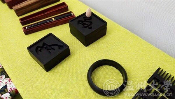 参会期间,原色工作室原创的檀香、黑檀木手镯、钢笔盒和木梳,拼布艺术工作室的手工布艺作品,以及14产品设计的手工挂坠吸引了许多人在我们展厅前驻足观赏,并给予了很大的肯定。除此之外,部分买家现场直接加微信号定制,有意深入合作,甚至也有买家想购买后大批量生产并投入市场,成为了义乌文博会上一道风景线。这次活动不仅象征着新葡官网创业团队走出校园,投入市场,同时也是对新葡官网创客空间创业者们的一种肯定。我坚信美院创业者将会面向社会,开发出更具特色的产品和服务,迈上了更大的舞台。