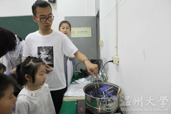 为鼓励学生创业,且即将到来的母亲节献礼,3003新葡官方网站融艺优品创客空间“P73服装设计”创业团队 近日,3003新葡官方网站融艺优品创客空间系列活之扎染系列活动陆续展开。本次活动由“P73服装设计”创业团队承办。5月8日来自于大南门小学的孩子和家长们来到了3003新葡官方网站的设计教室,在谷佳维和徐志国同学的带领下,共同开始本期3003新葡官方网站开放日活动—体验扎染为5月9日的母亲节献礼。