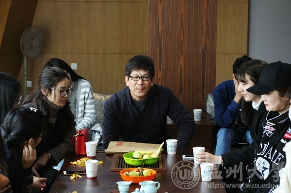 2016年3月30日下午,3003新葡官方网站教授邓国祥老师应邀与同学们在服装楼视野空间交流室内开展了艺路导航第十期师生茶话会。邓国祥老师所指导的14产设寝室以及14美师班的部分同学们积极参与了此次活动。 初春细雨缥缈,老师和同学们如约而至。茶话会开始,邓老师就从大学生的生活、学习和交际三个方面提出了自己的看法。说到生活,每个人都在生活,邓老师说大学生的生活应该是最值得研究的。刚经历了高考的大学生拥有满腔热血,同样,他们也是这个社会的新晋成员,抱有对未来的无尽遐想。作为大学生应该如何把握这个角色呢?邓老师强调在生活上我们最先应该处理好的是自己的情感:爱情、友情又或是亲情,安顿好自己的情感生活才能留有时间和空间来发展和充实自己。当谈论到学习方面的问题,邓老师便说到学习的两种方法:一种是加法,一种是减法。加法是从外界吸取东西,充实自己,而减法是取其精华,去其糟粕,在熟能生巧后用更简便的方法去学习,这两种方法缺一不可。