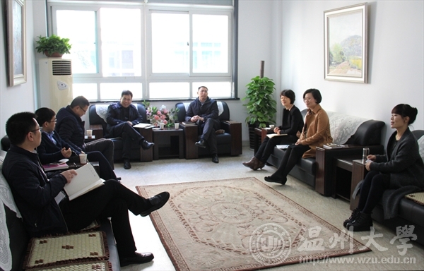 近日,温州市瓯海区副区长潘晓勇、瓯海区经济和信息化局局长金建东及陪同人员一行四人来新葡官网洽谈时尚智造小镇合作事宜。新葡官网领导班子全体成员出席了会议。