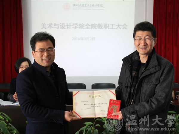 2016年3月2日下午,新葡官网在2B4001召开全院教职工大会,学院领导李运河、张丽萍、谢子静、王薇、杨振海出席会议。会议由院党总支书记张丽萍主持。 (新学期第一次全院教职工大会召开) 大会首先授予胡建南老师2015年度“院长特别奖”,表彰胡建南老师多年来在师范生教育和师范技能培养中做出的积极贡献。(李运河院长为胡建南老师颁发2015年度“院长特别奖”) 随后,美术系、环境设计系、视觉传达系、产品设计系、服装设计与工程系、服装与服饰设计系六个系主任以及实训中心主任分别阐述了2016年度工作计划要点。(各系主任、实验中心主任及教学督导组长发言) 学院各分管领导对本学期的工作进行部署和安排。谢子静副院长从学院督导工作、课程展、实践教学及毕业设计答辩及展览等方面部署了学期重点工作;王薇副院长对学院近期工作进行了总结和部署,强调了学科科研、大学生创新创业以及实验室建设等工作;杨振海副书记分别从学风建设、大艺展、招生与就业、寝室导师、学生创客空间等工作进行部署。 李运河院长做重要讲话。他对系主任的工作给予了高度肯定,他认为学院的发展建设依赖于各系、各专业的共同努力。他对新学期学院工作进行了部署:一是树立主人公意识,加强系、教研室、实训中心建设,指出每位教师要为学院的建设献计献策,关心学院发展,关心温大发展;二是加强人才培养,围绕“强实践、能创新、富有艺术素养和设计创作能力”应用型专业艺术人才的培养目标,注重教学过程建设,切实提高人才培养质量,以立地促跨越、实践创新“双核驱动“为导向,强调人才培养注重跨界学习、跨境培养。三是重视学科建设工作。他指出,要从服务地方中凝练课题,不断挖掘地域传统、参与地方文化建设,在艺术创作中突出主题和时代性。四是重视师资队伍建设,从”外引内培“来逐步打造具有核心竞争力的师资队伍,鼓励教师外出访学进修不断提高专业素养,跨专业组建教学科研团队;五是要加快国际化建设进程。(李运河院长讲话) 张丽萍书记总结讲话。她对系主任工作、督导工作等给予了充分肯定,指出每个系之间要相互了解,不断交流学习,彼此之间取长补短才能推进各个系的建设,进而推进学院的发展建设。在十三五开局之年,结合党建思想工作,她提出了美术学院大家庭建设的重要性。她认为,美院大家庭建设,离不开学院领导班子队伍和教师队伍。她说,美术学院班子是一个团结的、务实的、进取的、廉洁自律的班子,在各个方面充分发挥了火车头的作用;在教师队伍建设上,她认为要以“立德树人“为根本任务。在凝聚力建设上,张丽萍提出要依托载体、要真情关怀真情服务时刻为师生着想、要以积极的形象来振奋人心、要多举办文体活动来凝聚人心。(张丽萍书记讲话) 会上,金晨怡老师对2015年访学工作进行了汇报交流。