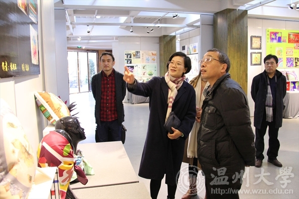 浙江省教育评估院院长施建祥参观美术专业学生习作展