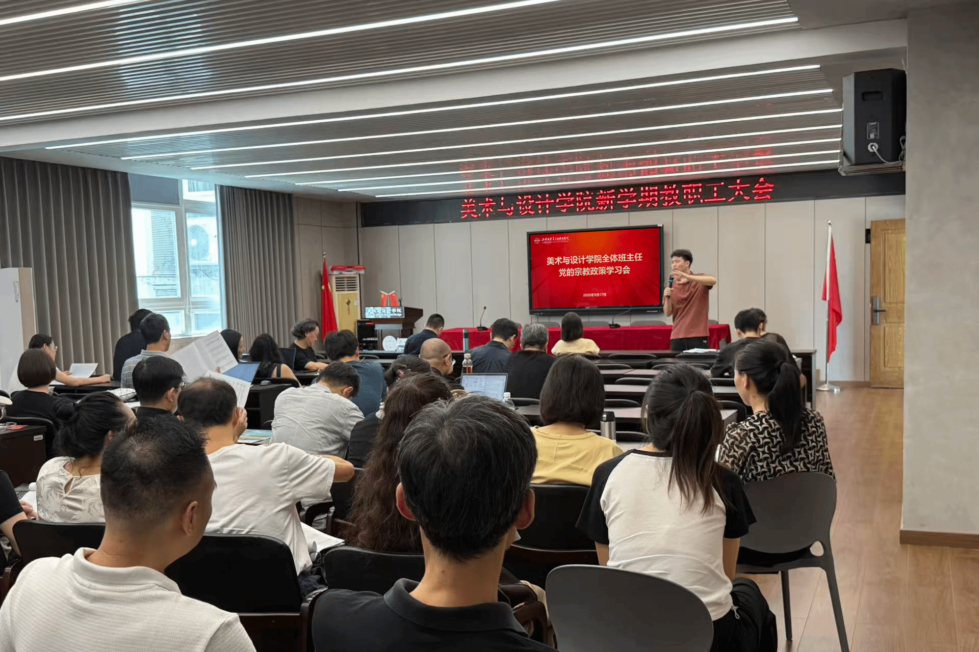 为部署新学期重点工作,统一思想,凝聚共识,进一步提升班级管理效能与学生工作水平。9月17日上午,新葡官网组织召开新学期班主任工作会议暨党的宗教政策学习会,学院全体班主任、辅导员参加会议,会议由学工办副主任杨永利主持。会议首先由学工办副主任杨永利带领全体班主任学习党的宗教政策。他重点解读了我国宗教工作的基本方针和政策法规,要求班主任积极引导学生树立正确的世界观和人生观,以便更好地开展学生思想政治教育工作。随后由各年级辅导员围绕学生心理健康教育、防诈骗、交通安全、学风建设、考研就业、公寓安全管理以及学科竞赛组织动员等方面进行了讲解和分享。最后,学院党委副书记叶如芳作总结讲话。她强调,一要扎实做好学生心理健康关怀、日常考勤管理,严格落实宗教政策要求;二要密切关注校园网络舆情,加强正面引导;三要强化学风建设,严肃课堂纪律,坚决杜绝迟到、旷课现象,同时保持教室环境整洁有序;四要重申纪律要求,明确违规电器使用等行为的处理后果,切实维护校园安全稳定;五要积极引导学生树立正确的职业规划意识,提前谋划个人发展。她希望全体班主任进一步增强责任意识,细致扎实推进各项工作,共同护航学生健康成长和全面发展。本次会议进一步明确了新学期班主任工作的目标与重点,为学生管理工作的有序推进奠定了坚实基础。期待在全体班主任的协同努力下,学院学生工作能够不断开拓新局面,取得新成效。初审:周键宇 复审:杨永利 终审:叶如芳