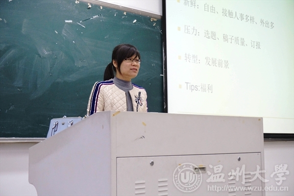 12月5日午时1点半,3003新葡官方网站团委学生会全体干事及新生干部于北校人文楼202室举行了2015-2016学年第三次团干培训,出席此次培训的嘉宾是温州商报记者、原温大记者团主编夏灵犀学姐。初冬冷雨绵绵而下,虽然天公不作美,但是我们美院团学的干事还是早早的到达了会场。座谈会一开始,灵犀学姐首先从她的大学生活引入,讲述她的记者之路。她说:“面对大学生活扑面而来的新鲜、热情、紧张和刺激,应该学会多一点的尝试、坚持和挑战。”她也有第一次见到知名教授的激动,第一次加入记者社团的好奇......然而满怀热情,在人生的重要转折点,也容易迷失方向。面对这些她说到:“心沉下来,明心才能明事理!要明白自己离未来究竟有多远,做好职业生涯规划很重要”。随后,便开始了对新闻采访与写作的培训,灵犀学姐首先提出了选题的重要性、显著性、时新性、趣味性,告诉大家要学会在变化中发现新闻,触类旁通寻找新闻。针对采访便从如何准备采访和如何采访两个角度出发,并且传授给大家更多细致的语言沟通技巧和抓取采访亮点的小诀窍。最后,对于如何提高新闻稿编写能力,灵犀学姐分别从技能、心理、体力三个方面进行了一些小建议,并留出提问时间,有同学提问关于如何处理好专业学习与兴趣拓展之间的矛盾,学姐指出专业学习是本业,自然是不能耽误的,而兴趣拓展是开拓眼界的好机会,如果是自己所钟爱的,自然也是不能轻易放弃,对于那些纸上谈兵的人来说,梦想,在遥不可及的千里之外;但对于那些有着“千里之行,始于足下”的精神的人来说,梦想,近在咫尺!掌声久久不息,学姐分享的话语,仿若窗外的雨,点点滴滴,组成了一个小文库,发人深省,相信新葡官网团学干部们的新闻采访与写作能力也有了进一步的提升。 文字:吴欣、张彬瑶 摄影:黄麟捷