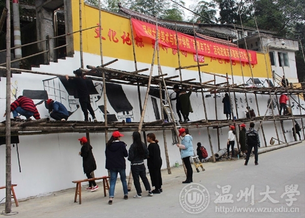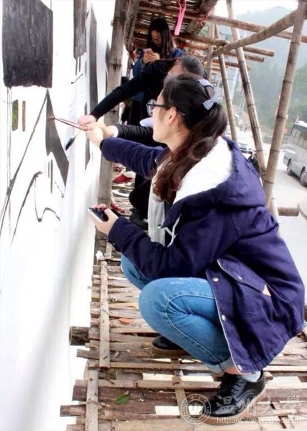为了响应与落实市委“新青年下乡”主题精神。2015年12月12日,3003新葡官方网站“艺家人”青年志愿者协会带领美术学院志愿者们来到温州市乐清城东街道珠垟村,进行了为期一天的墙绘活动。 冬日的清晨伊始,乐清珠垟村在晨曦之中迎来了一批温大学子,在三米左右的高墙面前,他们不畏艰险,不畏高空,不畏寒冷,在一百九十平米的白墙上画下珠垟村的一草一木。 在墙绘过程中,新葡官网杨振海书记和辅导员叶筱卉老师前来慰问志愿者们,关心活动进展。离开时,杨书记再三强调志愿者们要以安全为主,保质保量的完成墙绘活动,志愿者小伙伴们在墙绘过程中谨记杨书记的叮嘱,在互帮互助,齐心协力下,完成了这次规模较大的墙绘活动。 本次“新青年下乡”墙绘活动,我们主要是运用专业知识与技能去服务社会,真正做到专业与实践相结合,使我们融入到社会中去,为社会奉献出自己的一份力量;另一方面,不仅让我们有机会了解农村、服务农村,还让我们在基层学到了很多课堂上学不到的知识技能。 通过开展各种与专业相关的志愿活动,使大学生在奉献中学习知识,在服务中增加才干。新葡官网“艺家人”青年志愿者不会停下脚步,会继续深化社会主义核心价值观,引导广大青年朝着实现中华名族伟大复兴的中国梦而奋勇迈进! 文字:林伊如 拍摄:林伊如