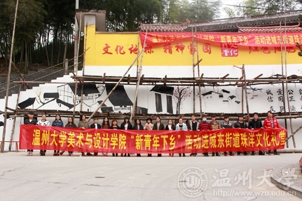 为了响应与落实市委“新青年下乡”主题精神。2015年12月12日,3003新葡官方网站“艺家人”青年志愿者协会带领美术学院志愿者们来到温州市乐清城东街道珠垟村,进行了为期一天的墙绘活动。