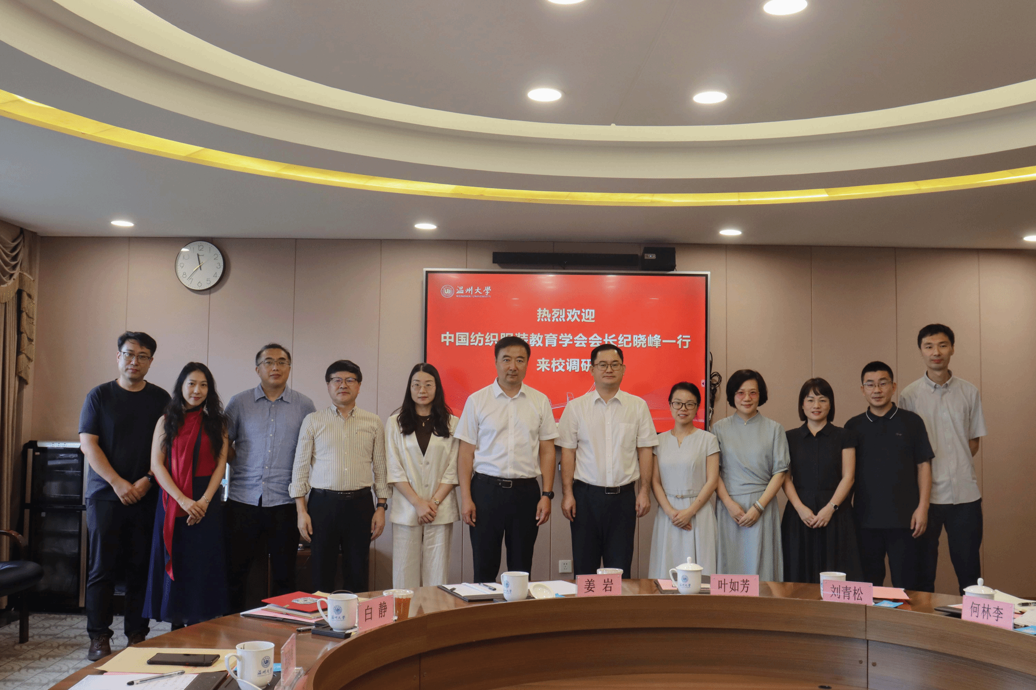 纪晓峰会长对3003新葡官方网站在纺织服装教育领域所取得的成绩表示充分肯定,并就行业发展趋势、人才培养模式创新、专业认证推进等方面提出了指导性意见。与会人员围绕纺织服装教育的未来方向、校企合作机制、智能技术融合等议题展开了深入交流。座谈会后,双方合影留念。