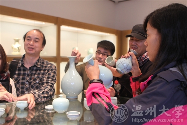 2015年10月31日、11月1日,3003新葡官方网站工会组织全院教职员工赴丽水龙泉展开青瓷考察之旅,报名参加此次活动的共有40余名工会会员。当日清晨,微风斜雨,气温骤降,但仍然抵挡不住教师们踊跃参加龙泉采风之旅的高昂热情,大家早早在约定时间迫不及待地等候出发。采风之旅的第一站,是曾芹记古窑坊。“曾芹记”第七代传人曾世平接待了采风团。曾芹记龙窑始建于清代,已有170多年的历史,长33米,高1.8米,一次可烧青瓷2万余件。古窑柴烧的龙泉青瓷,仿古传承、器型、釉色凝聚“曾芹记”传统的烧制技艺,2008年被列为浙江省首批非物质文化遗产传承保护基地,2009年龙泉青瓷传统烧制技艺正式入选《人类非物质文化遗产代表作名录》,这是中国陶瓷界得到的第一张世界级“非遗”名片。曾世平的青瓷继承了所有传统制瓷工艺,一应烧窑习俗均沿袭旧法。采风团在现场既欣喜更崇敬, 对代代以传统龙泉窑烧制青瓷的家族无比虔诚的守望历史和传统文化,感到由衷的敬佩和感激。采风之旅第二站,来到凤阳山。凤阳山位于浙江龙泉市东南50公里处,面积150平方公里,保护区内植物资源极为丰富,且素有“清凉天地”“天然公园”之美誉。山中保护区有景点近百处,其中江浙第一高峰------黄茅尖,海拔1929米,登上顶峰,可极目四望,一览众山小。凤阳湖,是瓯江发源地。采风团在天然氧吧享受远离城市的安详与宁静,在充沛的负氧离子中尽情释放烦恼与压力。张绍斌大师工作室,是采风之旅的第三站。张绍斌,字弘远,中国工艺美术大师,中国陶瓷艺术大师。出生于龙泉青瓷世家。一直以来,张绍斌对龙泉青瓷胎釉特性进行了深入系统的研究和实践,使青瓷釉色更加完美,圆满恢复了薄胎厚釉、支钉架烧等传统工艺以及研制成功新米黄色哥窑,提高了青瓷的品味,被誉为“当代官窑”。张大师作品做工精致,釉色晶莹剔透,釉层丰满、细腻、滋润如玉而又胜似玉,把龙泉青瓷薄胎厚釉的特点发挥到了极致。“青瓷是有思想,有生命的,没有思想的作品宁可砸掉也不要送人。必须全心将自己的感情、思想融入到了青瓷作品中去。” 张大师说到。这种认真,这种痴爱,潜移默化的影响了身边每个人,更让此次采风团的成员感悟同深:深厚的文化积淀,成就独特的艺术境界。本次龙泉青瓷采风,既是身体放松心灵放空之旅,更是专业学习精神汲氧之旅。青瓷的魅力,精湛的技艺,文化的传承,历史的责任,带给采风团成员深深的思索和无限的回味,行程在意犹未尽中悄然结束。