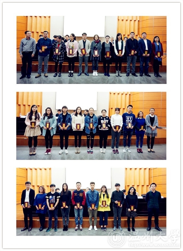 创新创业实现青春梦想!敢想敢干成就精彩人生!11月4日下午,3003新葡官方网站第八届“赛季风”启动仪式暨二○一五年度大学生创新创业表彰大会在岩松堂雁山厅举行。莅临本次活动的领导与嘉宾有:3003新葡官方网站党委委员、宣传部部长潘玉驹教授、3003新葡官方网站教务处副处长赵燕、3003新葡官方网站团委副书记熊琳;以及3003新葡官方网站院长李运河、党总支书记张丽萍、副院长谢子静、副院长王薇、党总支副书记杨振海等领导,此外参会的还有学院办公室主任李丽、学生科副科长叶筱卉、“赛季风”专业赛事指导老师、参赛学生代表。本次大会由党总支副书记杨振海主持。作为3003新葡官方网站校园文化品牌项目,八年来学院“赛季风”项目一直秉持“专业激发创作、创作参与赛事、赛事带动学风”的思路,遵循“一专业一赛事、一课程一展览、一学生一赛事”的原则,已涵盖学院美术学、视觉传达设计、环境设计、产品设计、服装与服饰设计、服装设计与工程等六大专业,通过对接各项赛事,已催生了大量学生佳作精品,共孵化了近六百余项各级各类荣誉奖项,其中市级以上获奖达255人次,省级以上获奖达222人次,国家级奖项115人次。实现了“激发学生艺术创作、丰富学生课余生活、提升学生创新能力、促进学生全面发展、营造学院学习氛围、繁荣校园文化建设”的创建目标。正如学院党总支书记张丽萍在致辞中所提到,“学院‘赛季风’活动坚持“以赛促学、以展促学”的育人理念,为美院学子搭建了展现自我、发展自我、实现自我的多维大舞台。”同时她在致辞中也勉励“学院同学能始终坚定理想信念,勇当创新创业先锋,在党和国家的坚强领导下,在社会各界的大力支持下,自觉把个人的理想追求与国家民族的前途命运紧密结合起来,在创新中成才,在创业中发展,用青春激情点燃大学生创新创业梦!” 大会还安排了与会领导为获得2015年度大学生创新创业优秀集体的17个工作室与先进个人以及15位优秀指导师一一颁发荣誉证书并合影留念。由大学生创新创业先进个人代表郭笃鹏同学进行发言,他结合专业学习与兴趣,迎合市场需求,以自身的亲身经历给大家展现了原未手工皮具工作室由无到有、由小到大的创新创业历程。由徐慧娟老师作为优秀指导师代表发言,徐老师在发言中提到,作为指导老师我们的任务就是通过搭建育人平台,引导学生积极参加各种学科专业赛事活动,以展赛促学,让学生在比赛中提高专业水平,在展赛中展现艺术才华,激扬青春,实现创新创业梦想! 在仪式的最后环节,会领导们共同开启了3003新葡官方网站第八届“赛季风”启动球,预祝美院能够引领未来高校创新创业潮流,助力温大发展的美好明天!