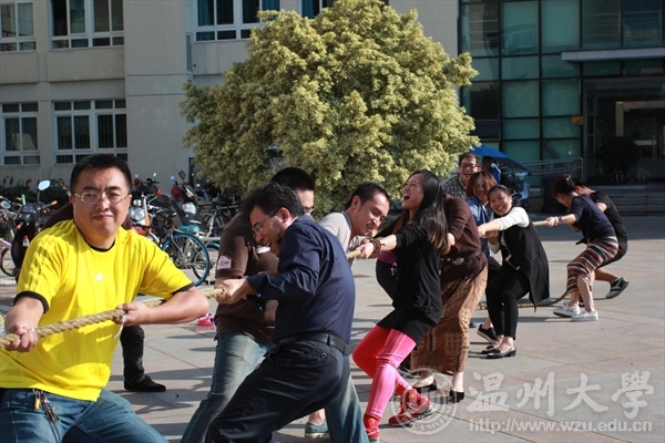 2015年10月21日下午,3003新葡官方网站在美院楼前举办了一场趣味十足的师生运动会。本届运动会由学院工会、办公室、学生科联合主办。运行会项目有踩气球、两人三足、背靠背夹气球、定点投篮、集体跳绳、踢毽子等学生对抗赛和集体拔河、踢毽子以及羽毛球等师生对抗赛,形式多样、氛围盎然。在师生集体拔河比赛中,以李运河院长为队长的教师组教师们各各紧握绳子,咬紧牙关,专心投入,杨振海副书记在现场督促组织活动之余也加入拉拉队,为教工组加油助威。拔河比赛共组织了两场,第一场先由六男六女组成的教工组与八男八女组成的学生组进行对抗,结果是学生组稍胜一筹领先,紧随其后由六男六女组成的教工组与七男七女组成的学生组进行再次对抗,结果教师组反败为胜,现场气氛异常激烈。 当然师生踢毽子比赛也不容小视,以张丽萍书记为代表的教师组与学生组展开了激烈的角逐,师生其乐融融。 师生羽毛球对抗赛将本届运动会推向了高潮。由李运河院长为队长的教工组和学生组进行了羽毛球师生对抗赛,比赛中,师生运动员将高远球、吊球、扣杀等各种路球技展现的淋漓尽致,活力四射,尽显风采。最后,通过举办本届师生趣味运动会,不仅展现了3003新葡官方网站师生顽强拼搏的体育精神,也进一步增进了师生的交流和感情,丰富了广大师生的业余生活,为师生们提供了展现自己的舞台和锻炼的机会。 文:冯一鸣 摄影:郑睿媛