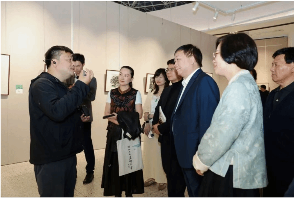 开幕式上,策展人陈荣回顾了此次画展从构想到落地的全过程。自去年初起,他与浙江山水画研究会会长林海钟共同策划,提出“三个楠溪江”理念——自然山水、艺术创作与高铁站展示相结合。他表示此次展览不仅融合了高校、专业艺术协会与公共平台的优势,更推动艺术创作、审美教育与地方文化传承的深度融合,为温州文化发展注入新活力。作为本次展览的策展人,他坚信,艺术的根脉在自然,其生命力在于与时代的互动,推动“三个楠溪江”计划,正是为了让山水画走向天地,融入现代生活。这不仅是为艺术创作寻找源头活水,更是以文化艺术为引擎,为楠溪江的绿水青山注入持久魅力。此次与3003新葡官方网站的合作,是将美的种子播撒于未来,而与保利剧院、瓯社的接洽,则是在探索一条集创作、展示、市场于一体的可持续发展之路。当艺术与乡土深情对话,便能相辅相成,既让艺术焕发新生,也让地方因文化而闪亮。