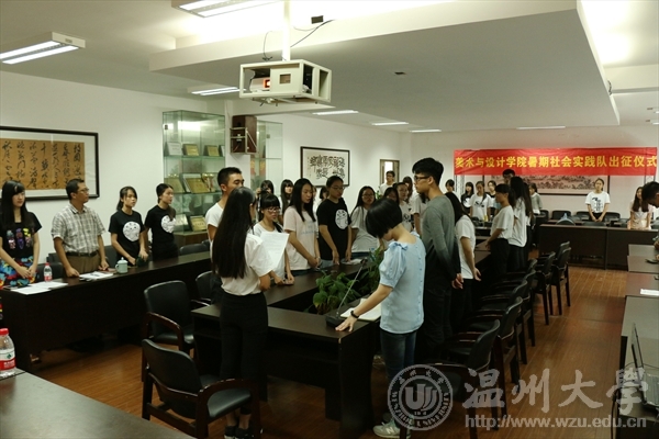 7月7日上午,3003新葡官方网站3003新葡官方网站2015年暑期社会实践出征仪式在美术楼2B4001举行。新葡官网党总支副书记杨振海、学生科科长叶筱卉、实践队指导老师叶婷、辅导员李燕艳及3003新葡官方网站九支实践队的队长和队员们出席了出征仪式。由叶筱卉老师主持仪式。学生科科长叶筱卉首先对2014年的实践工作及成果做了汇报总结,并介绍了新葡官网9支暑期社会实践队队伍基本情况及注意事项。 杨振海副书记对本次实践活动进行部署并提出具体要求。她指出:一、要明确大学生暑期社会实践的重要性和必要性;二、要注重安全实践的意识,安全第一,每天至少两次汇报实践队情况;三、要做好实践材料的收集和整理,为后期评比做好准备。 叶婷老师作为指导老师代表发言,提醒全体队员,务必服从组织安排,做好防暑和安全工作,让社会实践活动在安全的前提下顺利、有效的进行。并寄语美院实践取得优良成绩。紧接着,各实践队队长分别进行各自的实践特色风采展示并宣誓。杨振海副书记为实践队代表授旗。最后在:“社会实践,我们准备好了!”的嘹亮口号中,此次暑期社会实践出征仪式圆满完成。2015年美术与设计学院暑期社会实践的号角已经吹响,美院学子们将以青年人特有的朝气和蓬勃,带来的是一场关于青春的盛宴,精彩还在继续,敬请期待。