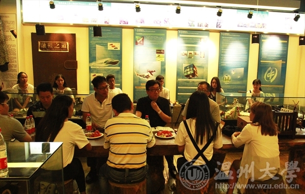 2015年7月15日下午,3003新葡官方网站副校长蔡曙光,在校团委副书记熊琳陪同下莅临中国皮革和制鞋工业研究院温州研究所,慰问“鞋蕴”传承艺术公益暑期社会实践队,实践队指导老师顾任飞副教授、研究所代表及全体实践队员参加了座谈会。会议由3003新葡官方网站总支副书记杨振海主持。座谈会在研究所鞋文化展厅中举行。杨振海书记首先简单介绍了“鞋蕴”概况,作为一个已传承五年的团队,这支实践队具有范围广、研究深、成果多等特点,同时对该团队获得校重点项目给予了肯定。实践队长周瑶代表实践队进行了汇报。她介绍了实践队的历史及其活动历程,并且从“鞋蕴”研讨、基础、推进、升华四个篇章对实践队的活动安排进行了具体汇报。“鞋蕴”传承实践队由来自美院不同年级、班级、专业,才艺非凡的25位同学组成。他们将在两周的时间内,共同完成义卖、墙绘、支教、留学生及台湾生交流会、参观学习等一系列的活动,将“鞋蕴”精神以及鞋文化传承创新,并推广出去。接着两位实践队员代表,分别从专业提升和团队精神两个方面发表了实践心得和感言。研究所所长助理陈一梁代表社会实践承接单位对队员们来学习交流表示了热烈的欢迎。实践队指导老师顾任飞对校领导的指导和慰问表示了感谢,他说“鞋蕴”传承这支实践队5年来紧跟温州社会发展和制鞋产业转型升级的步伐,今年围绕“时尚”和“匠心”两大主题开展了一系列的实践活动,实践内容与鞋靴设计专业人才培养目标一脉相承,是校内教学的延伸和深入,并对实践队顺利完成既定目标充满信心。蔡校长听完汇报后,首先对实践承接单位表示了感谢,对实践队努力推广鞋文化的精神表示敬佩,他说社会实践是高校教育的第三课堂,在实践中“受教育、长才干、做贡献”,“鞋蕴”传承实践队能很好的结合专业,并能历史传承,每年开展内容丰富的实践活动十分难得,他对实践队员的团结协作精神和实践成果表示了肯定,也衷心的祝愿我们能将“鞋蕴”实践队更好的传承下去,最后蔡校长还叮嘱队员们在活动过程中需要注意安全。座谈会结束后,蔡曙光副校长,熊琳副书记为实践队员发放了防暑药品及慰问品,实践队也向慰问领导赠送了队员们亲手制作的鞋文化手绘明信片和手工包,随后,在杨书记和顾老师的陪同下参观了研究所。蔡校长离开前再次叮嘱实践队员一定要注意安全,这反复的叮嘱此刻是如此的温暖,不仅拉近了蔡校长与队员们的距离,更让队员们满怀热情与勇气,迎接新的挑战。 正所谓“纸上得来终觉浅,绝知此事要躬行”,在暑期社会实践中,我们应该脚踏实地用行动去实现。校领导的慰问给了我们更大的鼓舞,相信新葡官网所有实践队会提起更大的实践激情,不忘初心,坚定决心,为今年的暑期实践画上更为精彩的一笔。