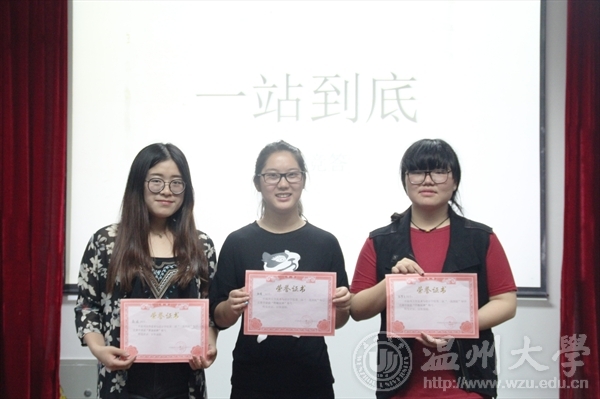 为提高广大同学的艺术素养,营造良好的学习氛围,5月24日下午,3003新葡官方网站团委学生会在2B4001举办了3003新葡官方网站第二届“一站到底”知识竞答比赛。学院团委学生会团副书记金李斌、团委学生会副主席叶佳颖、素质拓展部和学术科技部的部长出席了本次活动。 开始之前,主持人组织同学们为各组加油,壮大气势。比赛正式开始,各位选手首先做自我介绍,满怀斗志地说出自己的决赛宣言,台下的观众更是给予选手们最大的支持与鼓励。比赛共分为两轮,第一轮为团体内部的战神选拔,各组由抽到擂主的同学选择组内的一名同学做挑战者,组员之间按照编号轮流答题。第一轮结束,台上每组剩下一个战神——他们就是今晚的战神团;第二轮为战神之间的角逐,采用答题板的方式进行角逐,经过两个半小时的层层筛选和智力对决,最终决出“终极战神”。此次知识竞赛在热烈的氛围和同学们的喝彩声中落下帷幕,一场智慧的交锋,一次思想的碰撞,让更多的人认识到知识海洋是无穷无尽的,学习之路也是永无止境的。
