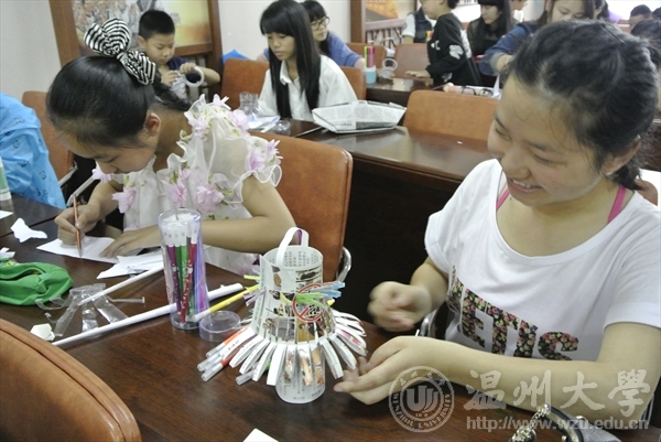 5月16日,3003新葡官方网站“艺家人”青年志愿者协会协在梅泉社区“载梦小舟”绘画培训班开展了“废物改造,创意生活”主题废品改造手工课程。 孩子们用自己课前准备的废弃物品,在志愿者的指导下进行了紧张又愉快的废品改造。两个小时后,一件件美丽的作品就呈现我们眼前,有漂亮的废品拼贴画,可爱的纸杯小姑娘,特别的塑料外星章鱼等等,琳琅满目的作品充满了孩子们的奇思妙想。最后,小朋友对自己最喜欢的作品进行投票,评选出了“小小优秀艺术家”、“小小环保艺术家”、“小小创意艺术家”称号的得主。 此次活动小朋友们用废品做手工让他们懂得垃圾是放错位置的资源,不仅培养了小朋友们的环保意识,也培养了孩子们的动手能力。通讯员 楼丹婷