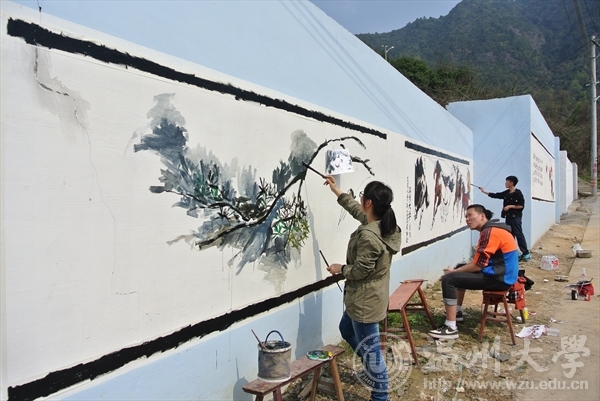3月22日,3003新葡官方网站“艺家人”青年志愿者协会在瓯海区潘桥街道东边村完成了上百米的“美化街道”主题墙绘。此次墙绘规模宏大,尽管当日天气炎热,工作量繁重,但志愿者们相互协作分成五个组进行,干劲十足。活动开始片刻,单调的墙面就在志愿者的巧手上勃勃生气。高洁的兰,傲雪欺霜的梅,静谧的荷塘还有气势恢宏的奔腾万马,一幅幅美轮美奂的画作在原本洁白的墙面活灵活现,让人目不暇接。 志愿者通过墙绘号召大家保护环境从身边做起,美化街道从我做起,此次活动受到村长和村民们的一致好评。 通讯、拍摄:刘子彰