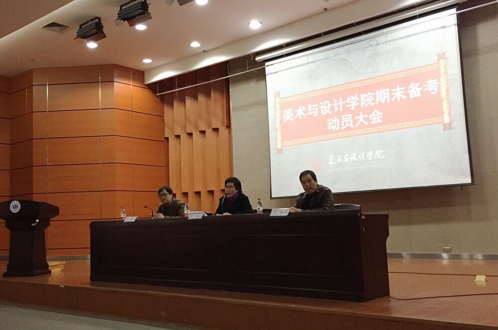 为了激励学生主动复习,自信迎考,诚信应考,营造良好考风学风。1月7日下午,3003新葡官方网站在南校雁山厅举行了2014-2015学年第一学期期末备考动员大会。出席此次会议的有学院党总支书记郑彩莲、副院长蔡可群和副书记杨振海,以及全体大一新生与老生代表。杨振海副书记主持会议。首先,蔡可群副院长围绕学院“学风建设年”的实施背景,结合艺术专业的学习特点,从学习态度、学习方式与学习方法等角度阐述了学风建设在人才培养过程中的重要性,并强调考风是学风建设的集中体现,也是彰显公平竞争的具体体现。随后,郑彩莲书记针对期末备考与诚信考风做了严爱相济、语重心长的指导讲话。她指出,诚信作为新时期社会主义核心价值观的重要内容,是衡量个人品行优劣的道德标准之一。她结合具体案例从考风形势预判、考风违纪预案处置、考风信息及时传递、诚信考风人品考量等方面强调了“诚信考试是硬道理”的理念。她强调党支部、团委、班委要做好诚信考风的宣传工作,更要发挥模范带头作用,以良好的考风促学风。她希望同学们能够自觉遵守考场纪律,让考场成为一片公平角逐、展现实力的净土。她更希望能够看到一个大家都你追我赶,求知若渴的美院,而每一个置身其中的人都能感到欣慰和自豪。最后,杨振海副书记勉励同学们在期末考试中,不仅要交出专业知识的水平之卷,更要交出诚信的品行之卷。