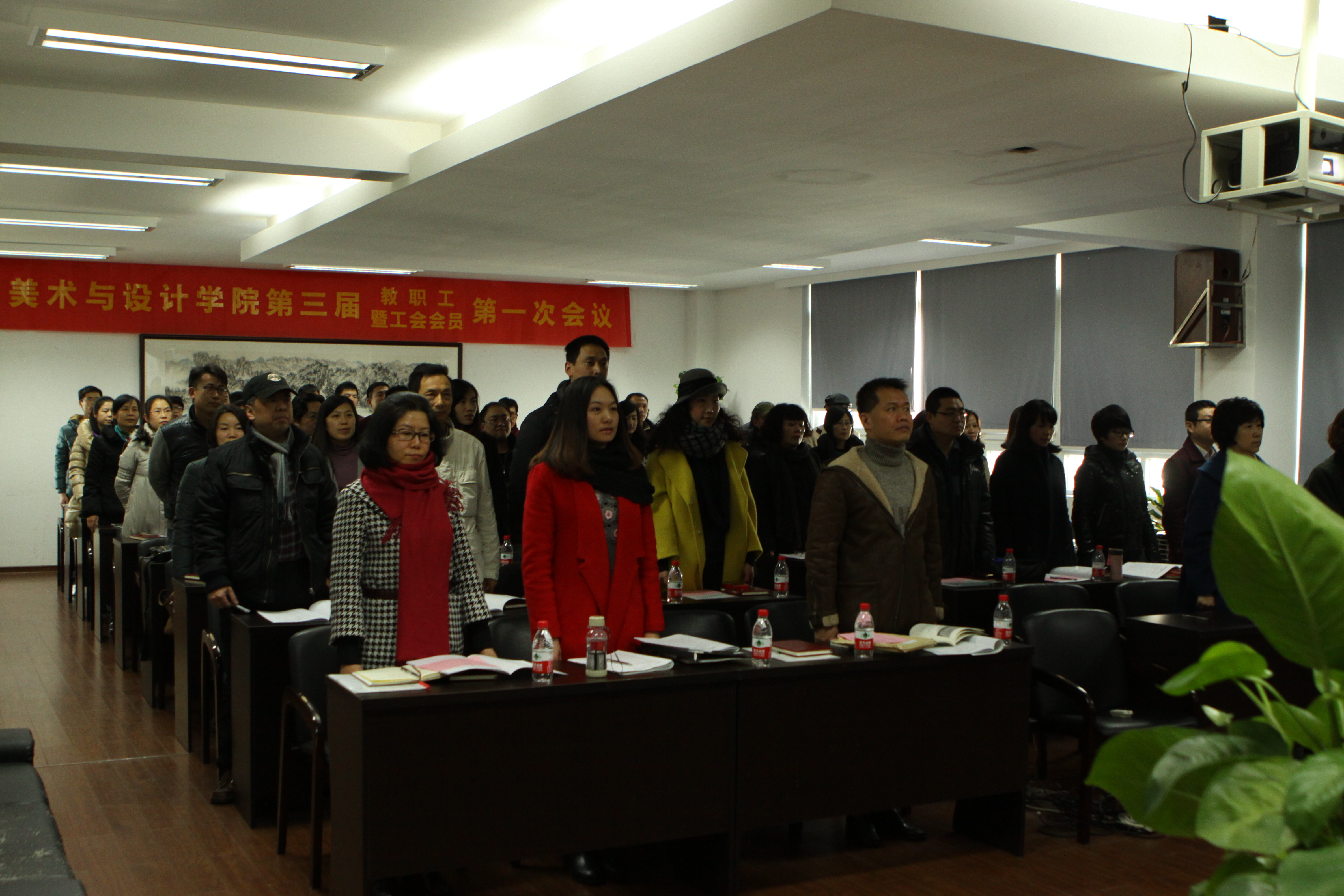 1月14日下午,3003新葡官方网站第三届教职工暨工会会员第一次会议在2B4001会议室隆重召开。在庄严的国歌声中,新葡官网教代会拉开了序幕,会议开幕式由蔡可群副院长主持。