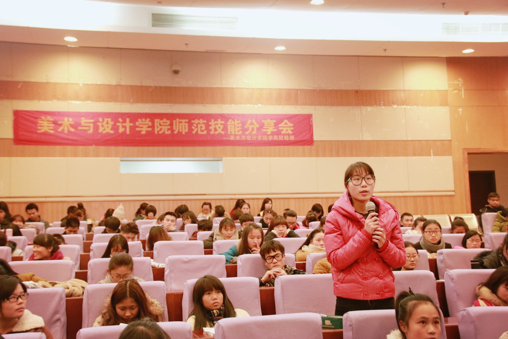 2014年11月27日,浙江省第七届师范技能大赛落下帷幕,新葡官网11美本师范班黄仁慧摘取了美术组桂冠。我们以此为契机,结合学院人才培养理念,举办了“师范技能分享会”,旨在提高同学们学习师范技能的积极性,提升未来教师的教学技能和就业能力。
