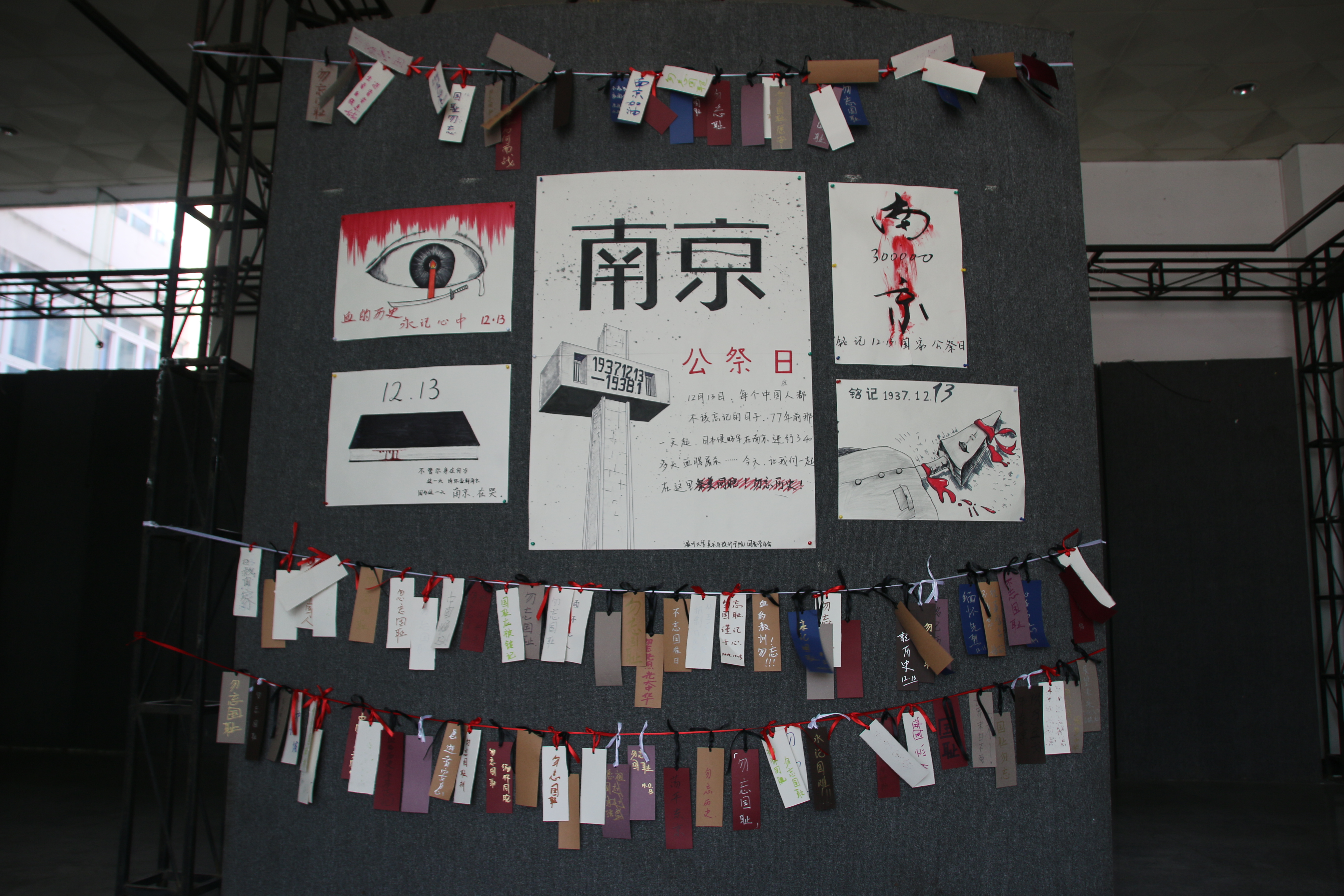 12月13日当天,3003新葡官方网站团委学生会创业就业部与学风纪检部为响应本次国家公祭日,在超豪学区开展举办了祭语公祭悼念活动。本次活动展出了两张手绘悼念大海报及多张手绘宣传公祭漫画,同时开展了温大学子亲手写寄语、挂祭语活动。一同为南京大屠杀遇难人民哀悼,缅怀抗日先烈,勿忘国耻,铭记历史。
