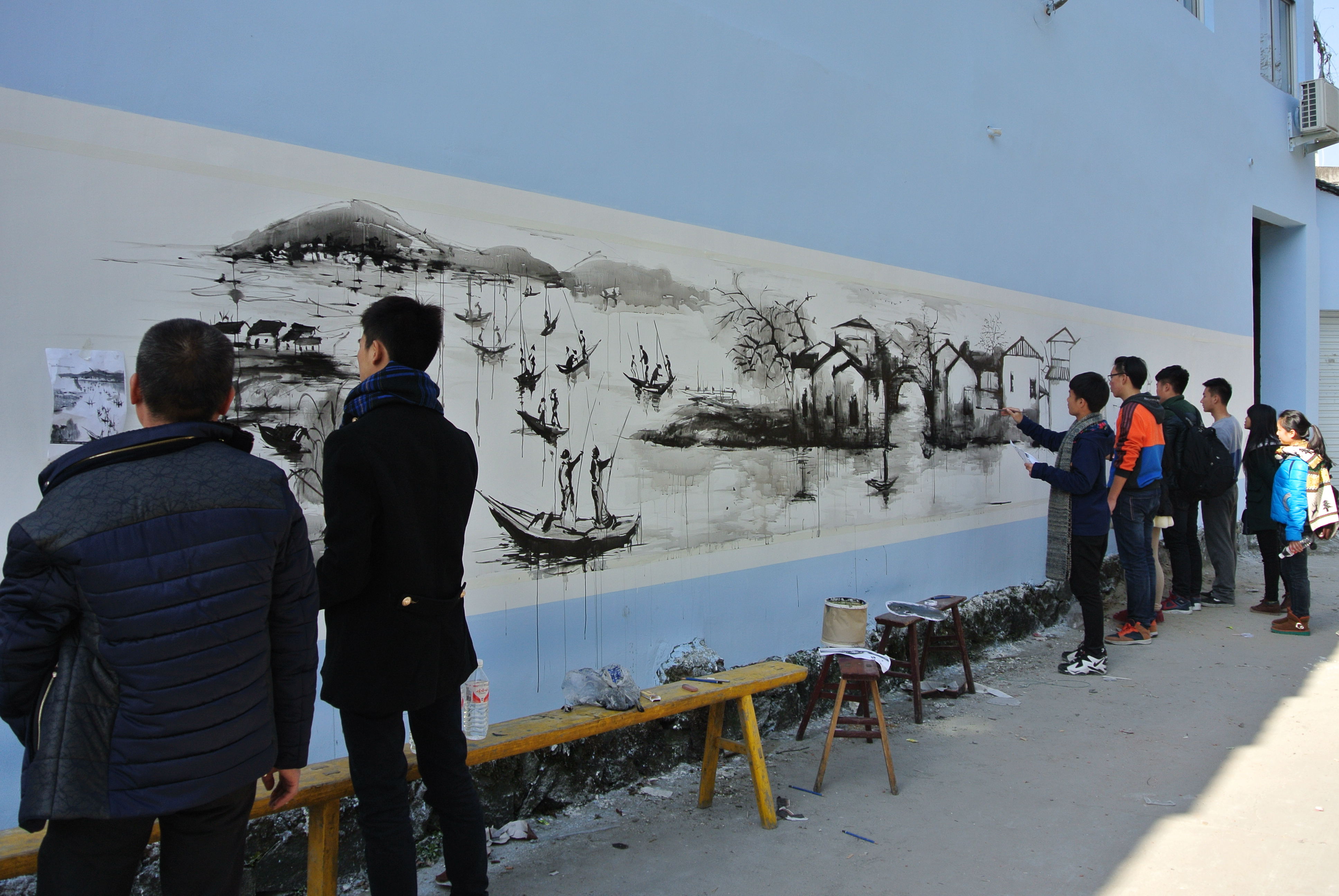 12月13日,新葡官网“艺家人”青年志愿者协会与温州市瓯海区潘桥街道东边村村委会共同举办了“五水共治”主题手绘文化墙活动。学院80余名志愿者来到了东边村,美化村中600余米的刚刚粉刷完毕的墙面。在积极响应浙江省“五水共治”的新政策,同时用大学生自身专业知识对环保知识进行宣传。