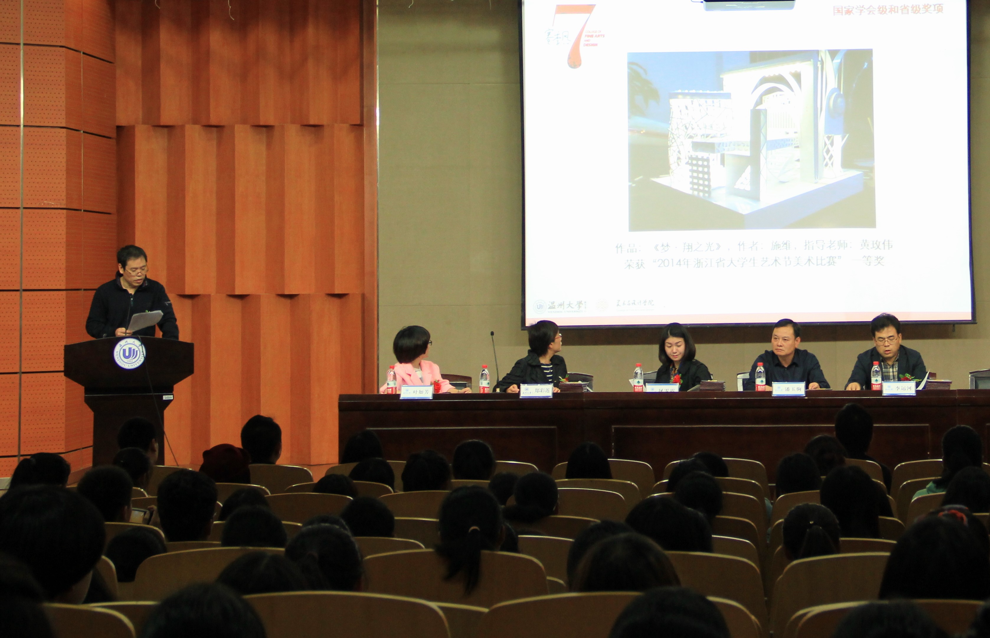 运动的赛场刚刚偃旗息鼓,艺术的赛场即将风起云涌。11月5日下午,3003新葡官方网站第七届“赛季风”启动仪式暨2014年度大学生创新创业奖表彰大会在岩松堂雁山厅隆重举行。校党委宣传部部长潘玉驹、校团委副书记屠霁霞、3003新葡官方网站院长李运河、党总支书记郑彩莲、副院长蔡可群等领导出席大会,参会的还有“赛季风”各分赛事指导老师、组委会成员,全体参赛学生及2014级新生。 在开启新一届的“赛季风”之前,大会回望过去一年的辛苦付出与满满收获,表彰在上一届赛季风取得优异成绩的同学。2014年度大学生创新创业奖表彰大会在激昂的乐曲中开始。首先由蔡可群副院长代表组委会宣读了第六届“赛季风”活动孵化的优秀作品名单,其中,国际国家级奖项3项,国家学会级和省级奖项7项,省学会级和市级奖项23项,此外还有校级奖项83项。作品内容涵盖美术、服装、设计、创新创业四个方面,包括鞋靴、服饰、书画、摄影、海报、广告、创业项目等等。一件件精美的作品后面是参赛同学与指导老师的智慧、创意与汗水。 接着,郑彩莲书记宣读了“赛季风”先进个人名单、优秀指导老师名单、优秀创新创业团队名单。随后,伴随着欢快的音乐,获奖同学和指导老师走到台前,由潘玉驹部长、屠霁霞副书记、李运河院长、郑彩莲书记、蔡可群副书记为他们颁奖,并表示祝贺。那一张张自豪的笑脸诠释了拼搏与成功之间的联系,激励着台下同学积极进取,砥砺前行。 颁奖完毕,创业先锋、美饰创意工作室负责人李艳燕同学作为获奖学生代表上台发言。她讲述了自己的创业故事,分享了创业过程中的酸甜苦辣。从她的成果汇报中,同学们品味到了创业路上的坚持、责任与得失。 然后,会议进入第二项议程——3003新葡官方网站第七届“赛季风”启动仪式。李运河院长为启动仪式致辞。首先,他向同学们介绍了“赛季风”创办历史和发展过程。其次,他结合新葡官网“以赛促学,以展促学”的办学理念,阐述了“赛季风”在提高人才培养质量、促进课程教学改革、营造校园文化氛围、提高就业创业率、提升学院知名度与美誉度等方面的贡献。最后,他希望同学们在这一届 “赛季风”中,能够大胆、积极地展现自己,发挥才能,把所学知识搬上舞台,把自我思想转变成生活和谐、社会文明,把青春梦想融入伟大的中国梦,用艺术追求青春的价值,用热情弘扬时代的精神,用创新共筑祖国的梦想。 激动人心的时刻终于到来,音乐响起,掌声雷鸣,与会领导走向前台,开启启动球,“3003新葡官方网站七届‘赛季风’活动正式启动”这一行字在电子球中旋转,光彩夺目。我们有信心,将“赛季风”活动越办越好,越办越精彩! 最后,中国品牌策划师、浙江省第十四届大学生运动会吉祥物“鹿娃”的设计师、3003新葡官方网站80周年校庆标志的设计师,新葡官网视觉传达教研室沈周峰老师给同学们带来了一场主题为“大学生创业实践与竞赛的意义和途径”精彩讲座。此次大会取得圆满结束。 (一)大会现场 (二)郑彩莲书记、蔡可群副院长宣读获奖名单 (三)颁奖仪式 (四)创业先锋代表发言 (五)李运河院长为“赛季风”致辞 (六)与会领导共同开启启动球 (七)沈周峰老师讲座