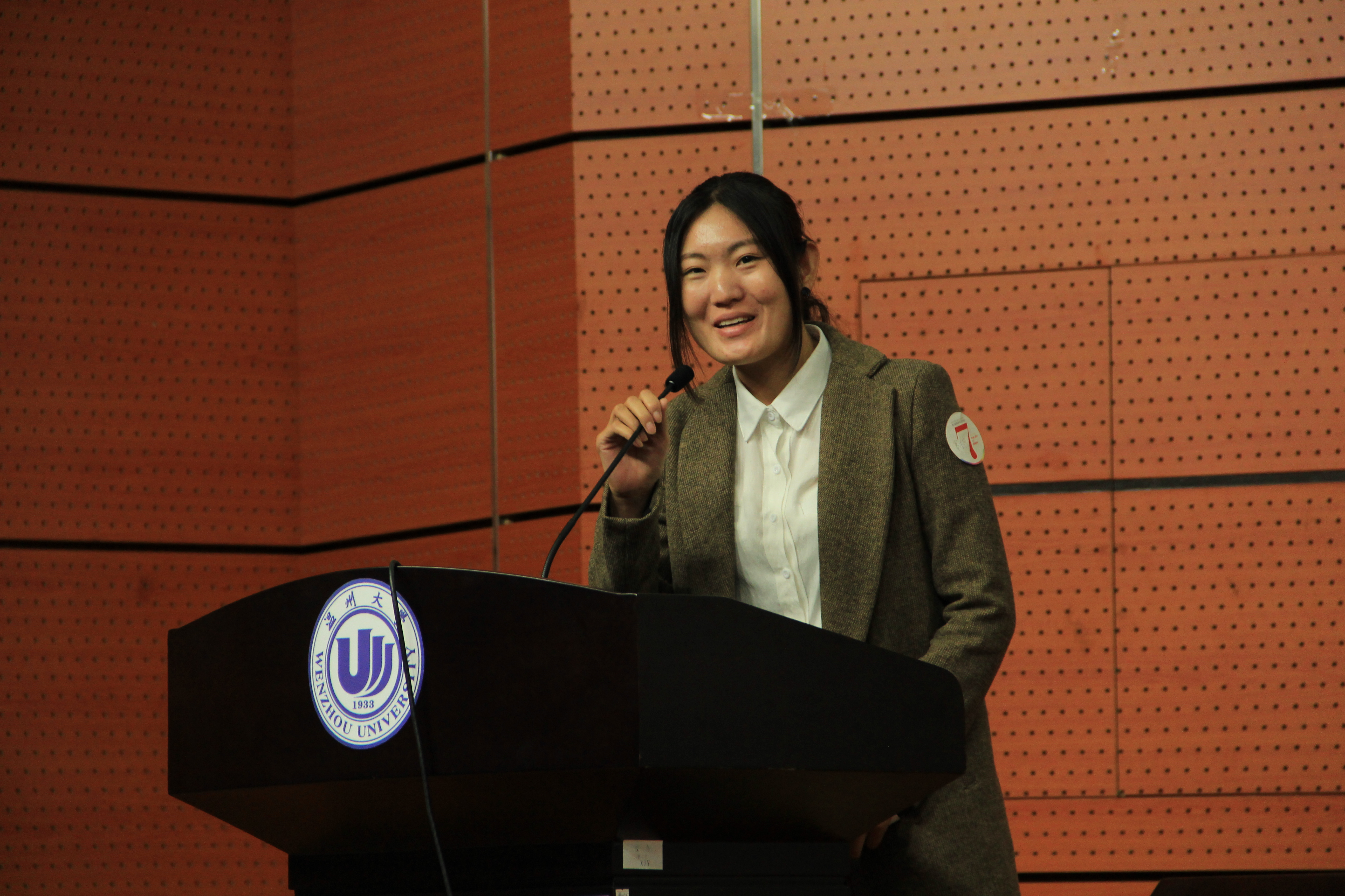 颁奖完毕,创业先锋、美饰创意工作室负责人李艳燕同学作为获奖学生代表上台发言。她讲述了自己的创业故事,分享了创业过程中的酸甜苦辣。从她的成果汇报中,同学们品味到了创业路上的坚持、责任与得失。
