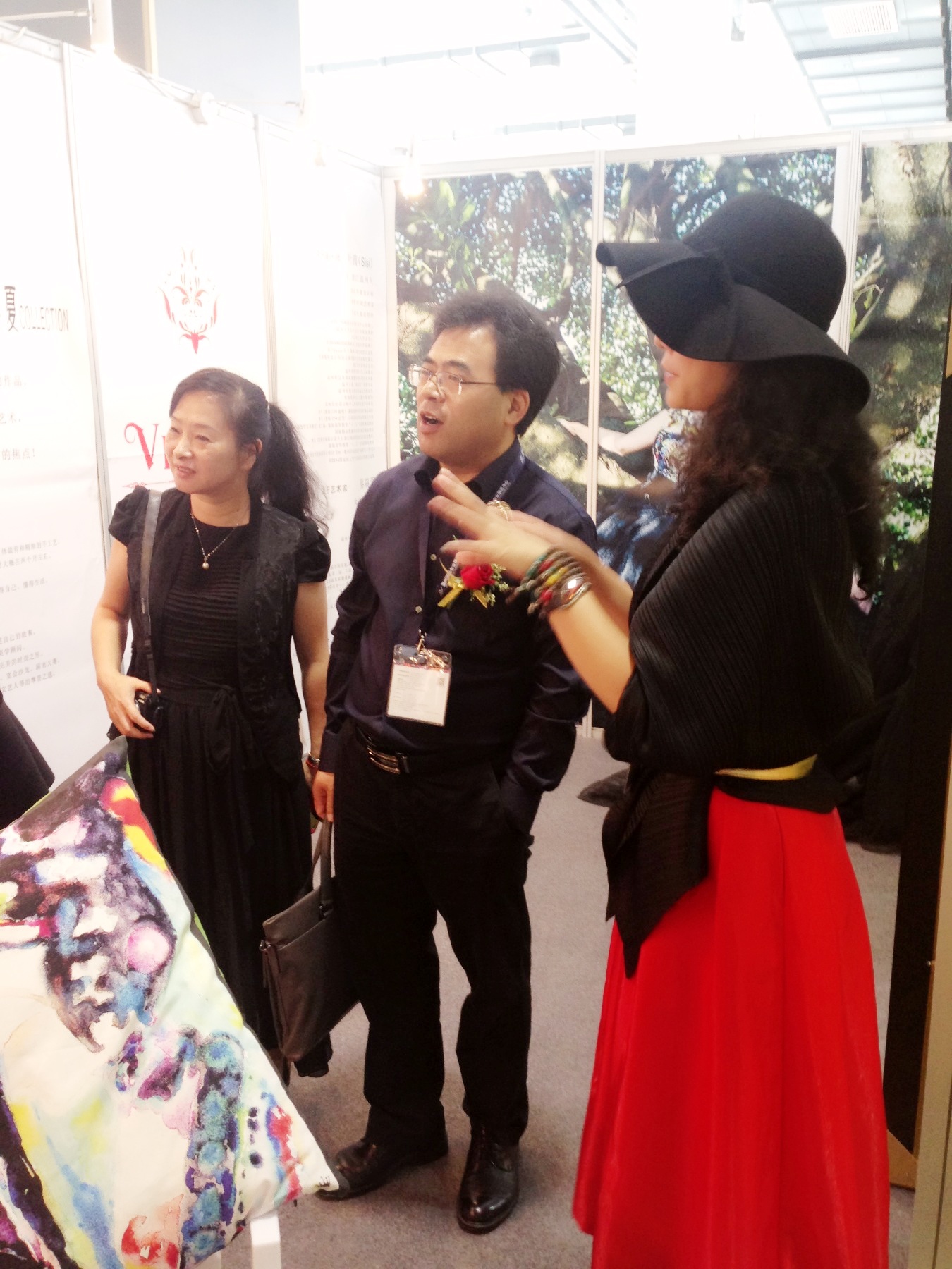 在近日2014温州国际时尚博览会的现场,一个很有特色的展位以惊艳的视觉捕获了参观者的眼球。象画廊、又似戏曲舞台,看似传统却透着时尚,这便是由温大3003新葡官方网站副教授叶茜携手著名画家蔡瑞蓉女士(温大美院教授)的“绝代风华”跨界系列作品。她从艺术作品中提炼画面的视觉,让传统民间皮影文化成为时尚艺术,运用现代数码印花的工艺技术以鲜艳的色彩真实的传递了这一季独具魅力的焦点!本次作品叶茜老师同时结合了指导学生的国家创新创业课题的项目“IN-数码印花创意产品研发工作室”,她与参与指导的叶婷老师一起研究数码印花的工艺和面料效果,并让学生参与图案设计及应用,作品有时装、礼服和家纺等应用产品,在工艺制作上也得到了浙江丽丰服装科技有限公司和杭州宏华数码印花的大力支持。温大3003新葡官方网站院长李运河教授和服装系主任陈明艳教授特意到场观看,并高度评价!