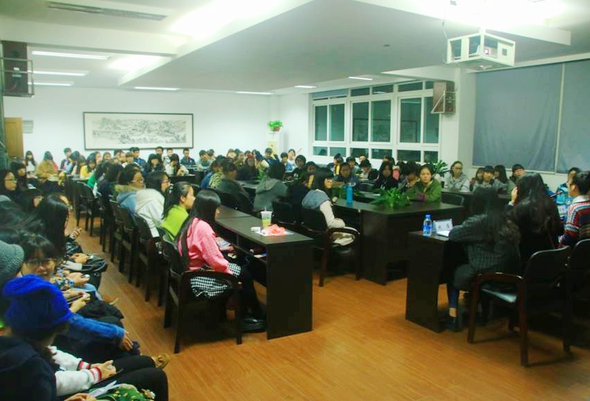 2014年11月13日 3003新葡官方网站“‘艺’起分享”艺术大赛获奖经验交流会在美院2B4001举行。此次活动由院学风纪检部主办,他们邀请了去年在省级以上学科竞赛中获奖的四位同学来传授经验、分享感悟。她们分别是获“真皮标志•石门湾杯” 中国鞋类设计大赛优秀效果图奖的汪素影,荣获“第十届可可尼杯中国国际女装设计师大奖赛 ”入围奖的魏婷婷,荣获“中国OOH青年广告创意大赛” 优秀奖的李耀慧,荣获“2014年浙江省大学生艺术节美术比赛” 一等奖的施维。美院大一新生积极参与了此次活动。