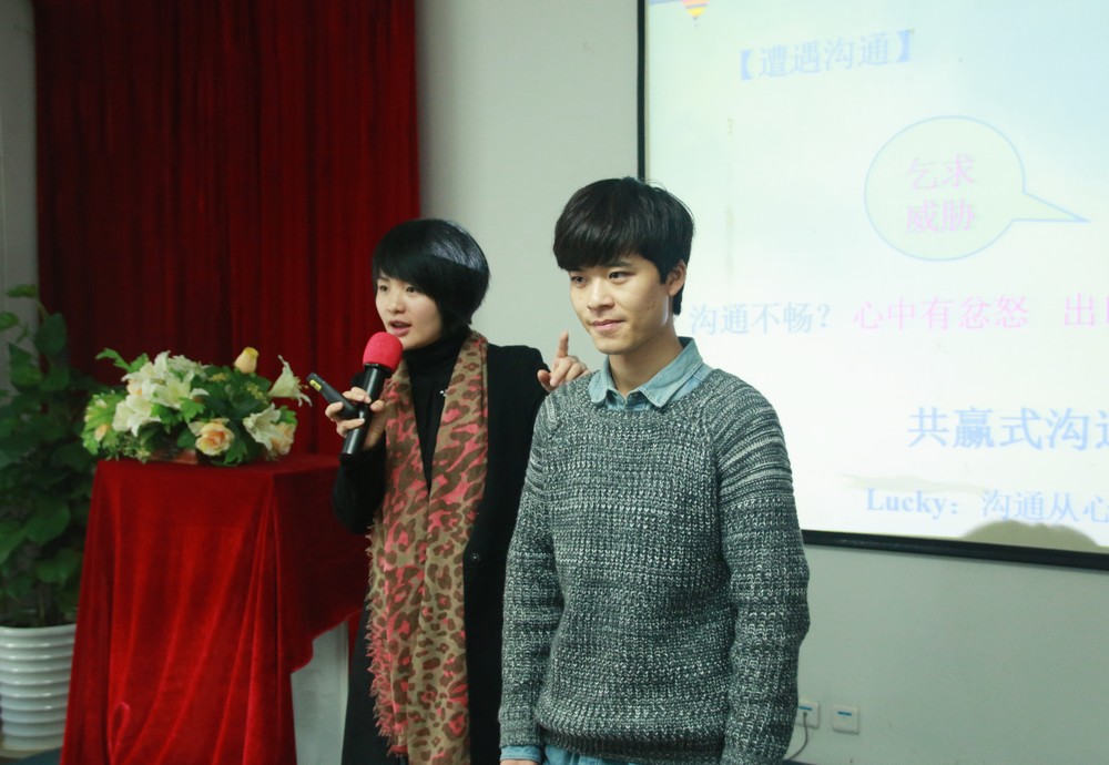 2014年11月19日下午,3003新葡官方网站第二次团干培训在2B4001举行。本次培训我们特邀校团委办公室副主任、国家二级心理咨询师、张怡筠情商教育指定课程版权讲师王晓华主讲。团委学生会及班长联合会全体成员积极参加了本次培训。培训讲座由团委副主席冯瑜瑜主持。一曲意气奋发中国共产主义青年团团歌拉开了培训序幕,让同学们提起精神,进入学习状态。紧接着,团干培训组织委员刘秀娜宣讲团学干部培训班准则。之后迎来了期待已久的王晓华老师带来的精彩辅导。王晓华老师围绕“情商管理”为主题给同学们上了一堂生动的课。她用简单的生活例子揭示了深刻的道理,用欢快的互动方式演示沉重的心理话题。从“做自己、为团干、致青春”这三个方面层层深入,讲述了情商的高低对自己发展和团队发展的重要性。她教育我们首先要“先处理心情再处理事情”,要学会管理愤怒,从指责型向解决型转变。其次,要“先管理自己再管理他人”,要“了解自己、开发自己、成为自己”。并详细讲解了如何“用自己的发展带动他人的发展”最后,要完成三个转变,从“生活管理”到“时间管理”再到“人际管理”。在培训过程中,王晓华老师穿插的三个情景表演让现场的气氛保持活跃,学生“入戏”颇深,受益匪浅,直至培训结束,同学们似乎还“意犹未尽”,围着王老师继续提问。最后王老师还为同学们推荐了很多心理方面的书籍。培训取得圆满成功。