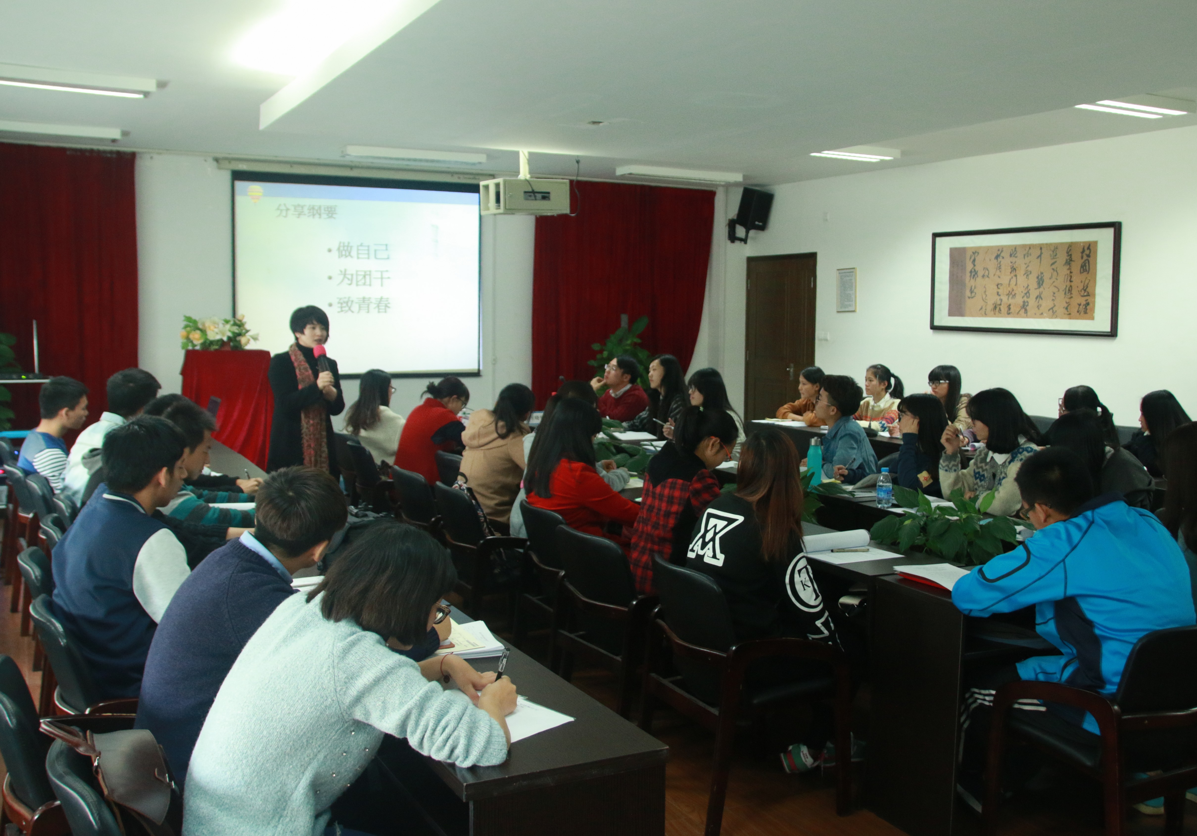 2014年11月19日下午,3003新葡官方网站第二次团干培训在2B4001举行。本次培训我们特邀校团委办公室副主任、国家二级心理咨询师、张怡筠情商教育指定课程版权讲师王晓华主讲。团委学生会及班长联合会全体成员积极参加了本次培训。培训讲座由团委副主席冯瑜瑜主持。