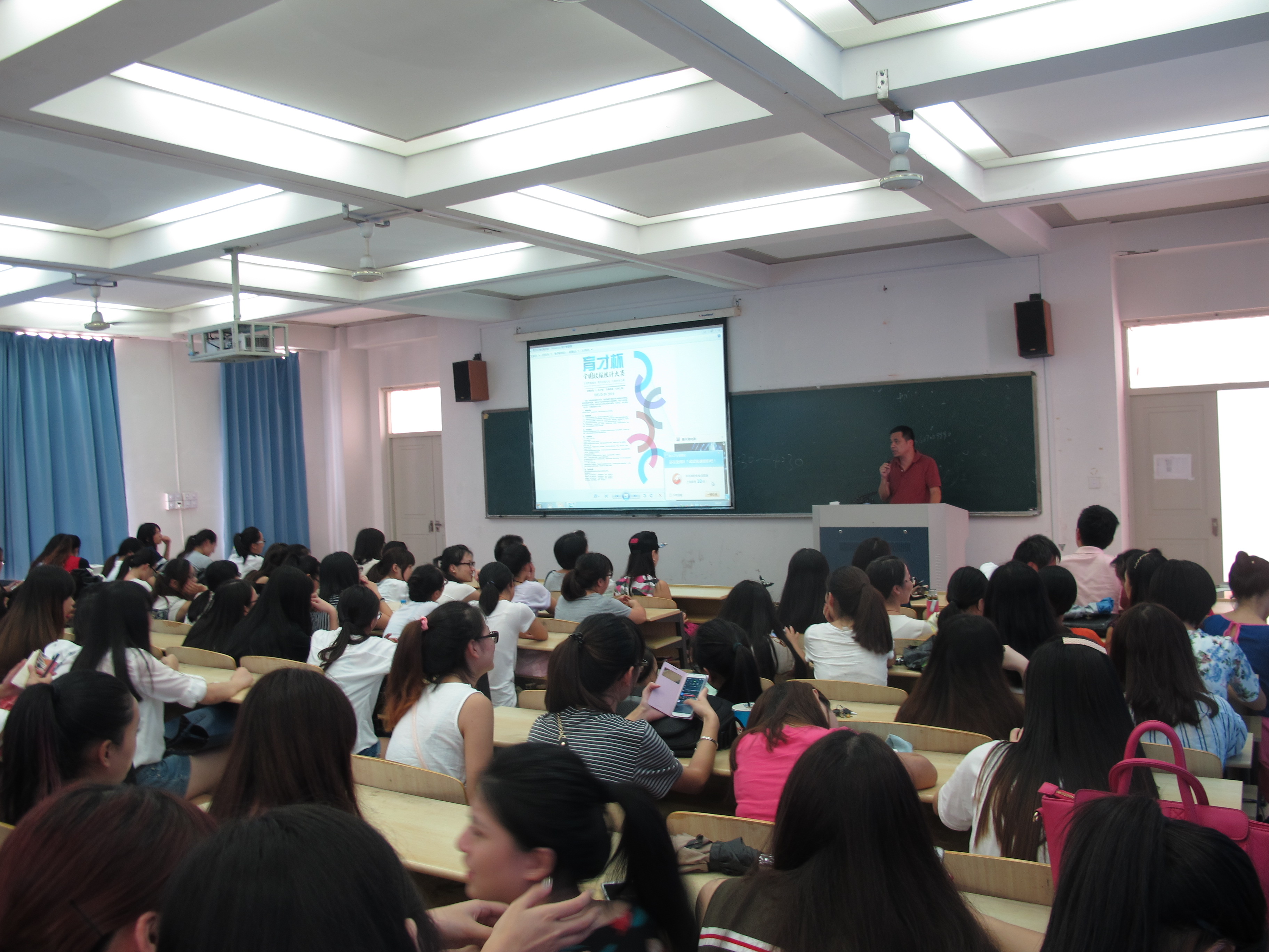 2014年9月28日下午14点,3003新葡官方网站在3A201召开“育才杯”全国校服设计大赛动员大会,学院党总支书记郑彩莲出席动员会,服装系全体师生共200人多参加了此次会议。会议由服装系主任陈明艳主持。