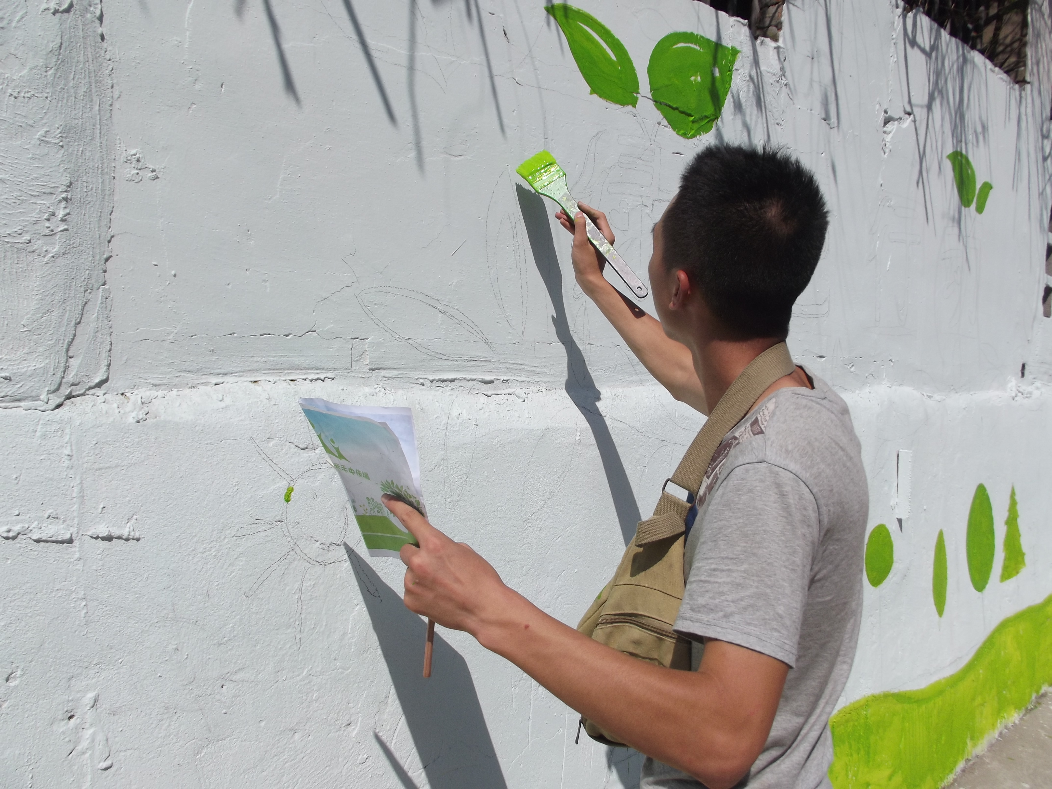10月12日上午8点,3003新葡官方网站“艺家人”青年志愿者协会与瓯海区茶山镇梅泉社区居委会合作举办了“创建文明城市”的墙绘活动。激情满怀的大学生志愿者们结合自身专业优势,以“创建文明城市”为主题,以绿色作为主色调,宣传低碳环保的生活理念。在志愿者的认真绘制下,白色空旷的墙壁被一幅幅美丽的图画所代替,引来附近居民一片赞叹。