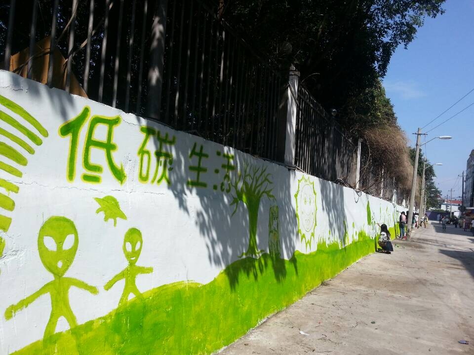 一支支画笔,一面面白墙,一群怀揣着“爱心融入创作,艺术奉献社会”信念的大学生志愿者,将瓯海区茶山镇梅泉大街小吃巷的墙面装扮一新,曾经脏乱的街道如今变成了一道靓丽的城市文明风景线。 10月12日上午8点,3003新葡官方网站“艺家人”青年志愿者协会与瓯海区茶山镇梅泉社区居委会合作举办了“创建文明城市”的墙绘活动。激情满怀的大学生志愿者们结合自身专业优势,以“创建文明城市”为主题,以绿色作为主色调,宣传低碳环保的生活理念。在志愿者的认真绘制下,白色空旷的墙壁被一幅幅美丽的图画所代替,引来附近居民一片赞叹。