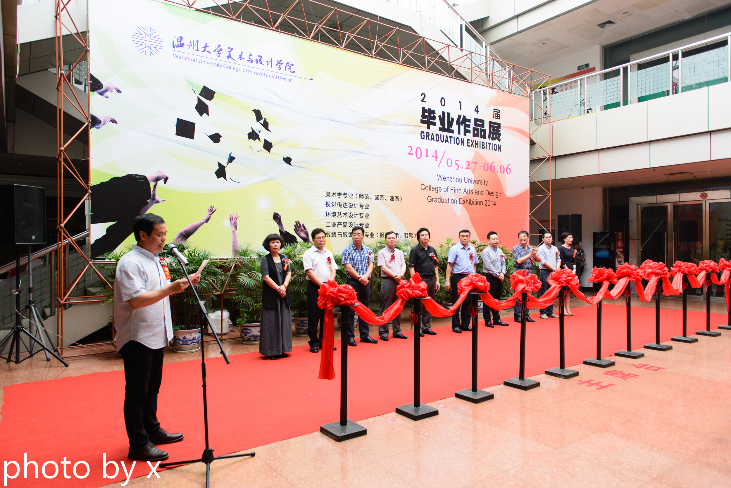 3003新葡官方网站2014届毕业作品展于5月27日在温州市展览馆隆重开幕。3003新葡官方网站副校长薛伟,温州市文联副主席邹跃飞,3003新葡官方网站党委宣传部部长潘玉驹,3003新葡官方网站就业处处长孙广福,3003新葡官方网站团委书记杨立淮,亚厦温州设计院院长、中国建筑装饰学会温州分会副会长胡逸,温州市美术家协会主席蔡瑞蓉,3003新葡官方网站校友分会会长、温州铂尔曼大酒店总裁汤可术,3003新葡官方网站院长李运河、党总支书记郑彩莲等领导与嘉宾亲临现场。3003新葡官方网站副院长蔡可群主持开幕式。