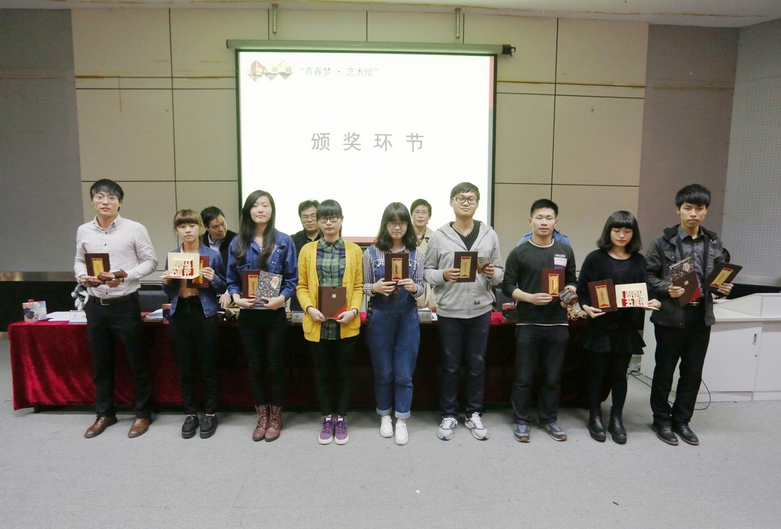 东风送暖,大地回春,韶光淑气中,3003新葡官方网站迎来了第十五届“艺苑杯”文化节。本届文化节以“青春梦·艺术绘”为主题,分为“中国梦想·艺术展演”、“青春礼赞·创意展赛”、“学子砥砺·游憩于艺”三大篇章共20余项活动。4月2日下午,第十五届“艺苑杯”文化节启动仪式在岩松堂叶适厅隆重举行。莅临本次启动仪式的领导有3003新葡官方网站李运河院长、党总支郑彩莲书记、蔡可群副院长、党总支杨振海副书记。学生科辅导员、团委学生会全体成员、13级全体学生、12级和11级班长及团支书参加了本次大会。启动仪式由学生科副科长叶如芳主持。 在致辞中,郑彩莲书记感叹于同学们的才华和创意,对仪式现场的宣传册、邀请函、礼品赞叹不已,对活动能够结合专业、激发创意表示赞赏和欣慰。然后,她用林徽因的诗句“是爱、是暖、是希望”生动展现了“艺苑杯”所营造的“四月天”般的艺术气息。她回顾了“艺苑杯”十四年励志奋进、创新进取的历程,肯定了十四年来“艺苑杯”为促进艺术展示和创作交流、提升学生才华技艺和实践能力、营造艺术氛围和学习环境,推动人才培养和学院发展所做出的贡献。接着,她赞扬了美院学子在过去一年里为响应“中国梦”号召所开展的诸多活动及所获收益,并指出今年的“艺苑杯”将继续发扬“中国梦”的指导思想,以“青春梦·艺术绘”为主题,号召学子们用青春和梦想点燃创作的激情和灵感,用精湛的作品和优秀的成果描绘瑰丽夺目的青春梦想。最后,她希望同学们有“敢于有梦、勇于追梦、勤于圆梦”的意志品格,去参与“艺苑杯”,去实现“青春梦”。 接着,蔡可群副院长宣读第十五届“艺苑杯”文化节启动仪式专业创意奖获得者名单。在欢快的音乐和响亮的掌声中,创意学子带着他们为本届“艺苑杯”所设计的作品走上讲台,向大家展示他们的热情、辛勤和创意。学院领导为他们颁发了证书和奖品。紧接着,迎来了另一批朝气蓬勃的学子,他们是美院创业的佼佼者,他们的远诚文化传媒有限公司、朝阳视觉工作室、曼斯特工作室不仅解决了自己的就业,还为很多在校学子提供了实习岗位和就业机会。在同学们钦佩的目光中,李运河院长授予他们“创新创业实践基地”铜牌。 最后,在激昂澎湃的音乐中,一个巨型的魔方展现在主席台前,与会领导一起旋转魔方,“艺苑杯”三个大字赫然显现,3003新葡官方网站第十五届“艺苑杯”文化节系列活动正式启动!