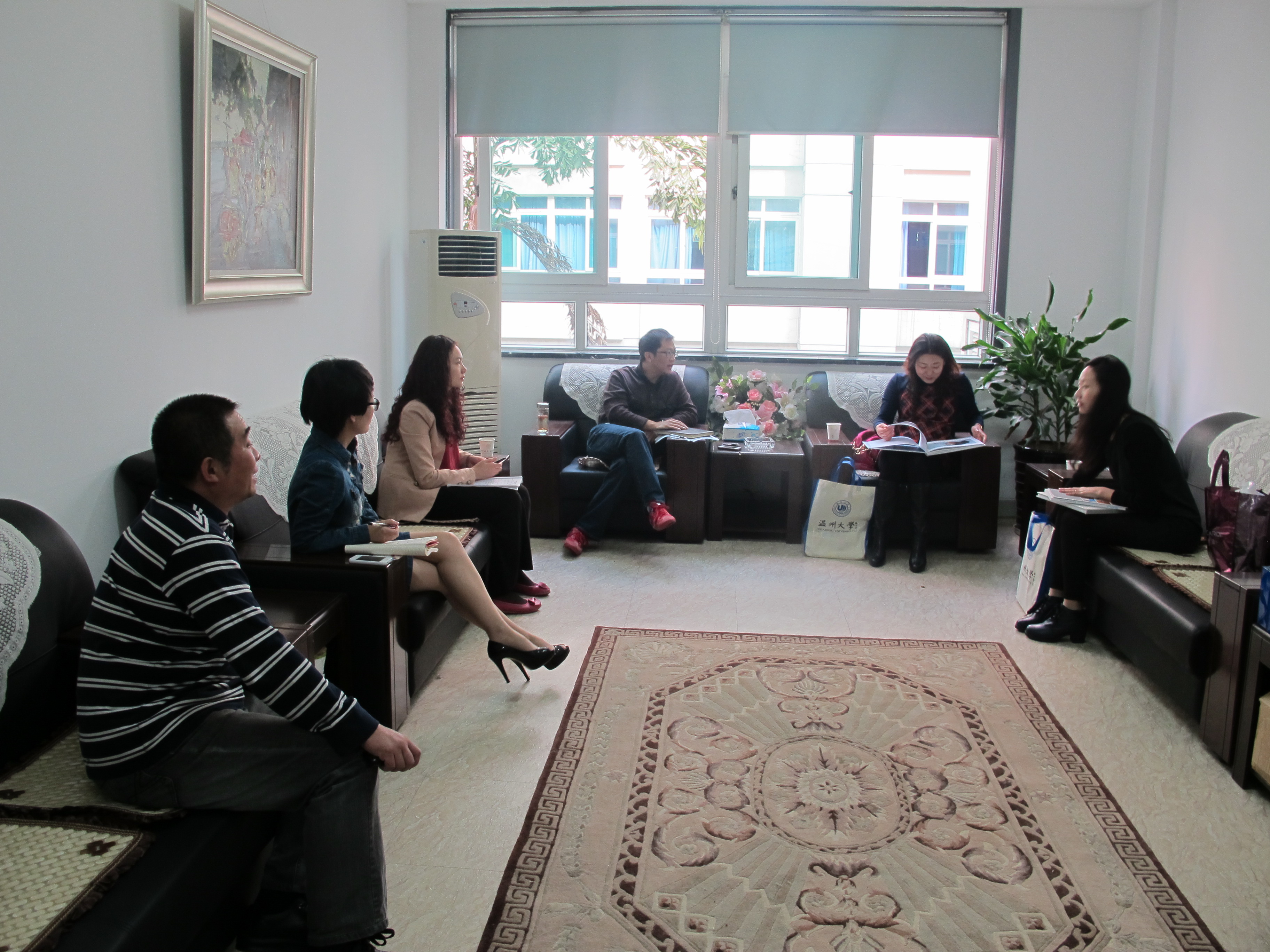 10月30日上午,唐山师范学院美术系书记李丽娜、招生就业办公室副主任李旭一行来新葡官网考察交流。学院党总支书记郑彩莲、副书记杨振海、办公室主任李丽、美术系主任陈伟、学生科副科长叶如芳等会见了客人,双方就学生工作、美术系专业建设等内容进行了工作交流和探讨。 杨振海代表学院对唐山师范学院考察团一行的来访表示欢迎。他简要介绍了新葡官网的发展历程,学科专业特点,以及近年来学院取得的成绩。他希望通过两校的交流与合作,取长补短,互相学习,共同促进双方学院在教学、科研、人才培养上的蓬勃发展。李丽娜对新葡官网的热情接待表示诚挚的感谢,对新葡官网取得的发展尤其是学生学科竞赛、就业创业等工作的鲜明特色,给予了高度赞赏,并表示希望通过这次考察交流,深入沟通,进一步提高该系的办学水平和学生就业水平。 交流会后,考察团一行还兴致勃勃地参观了我校富有地方特色的大学生创业园。