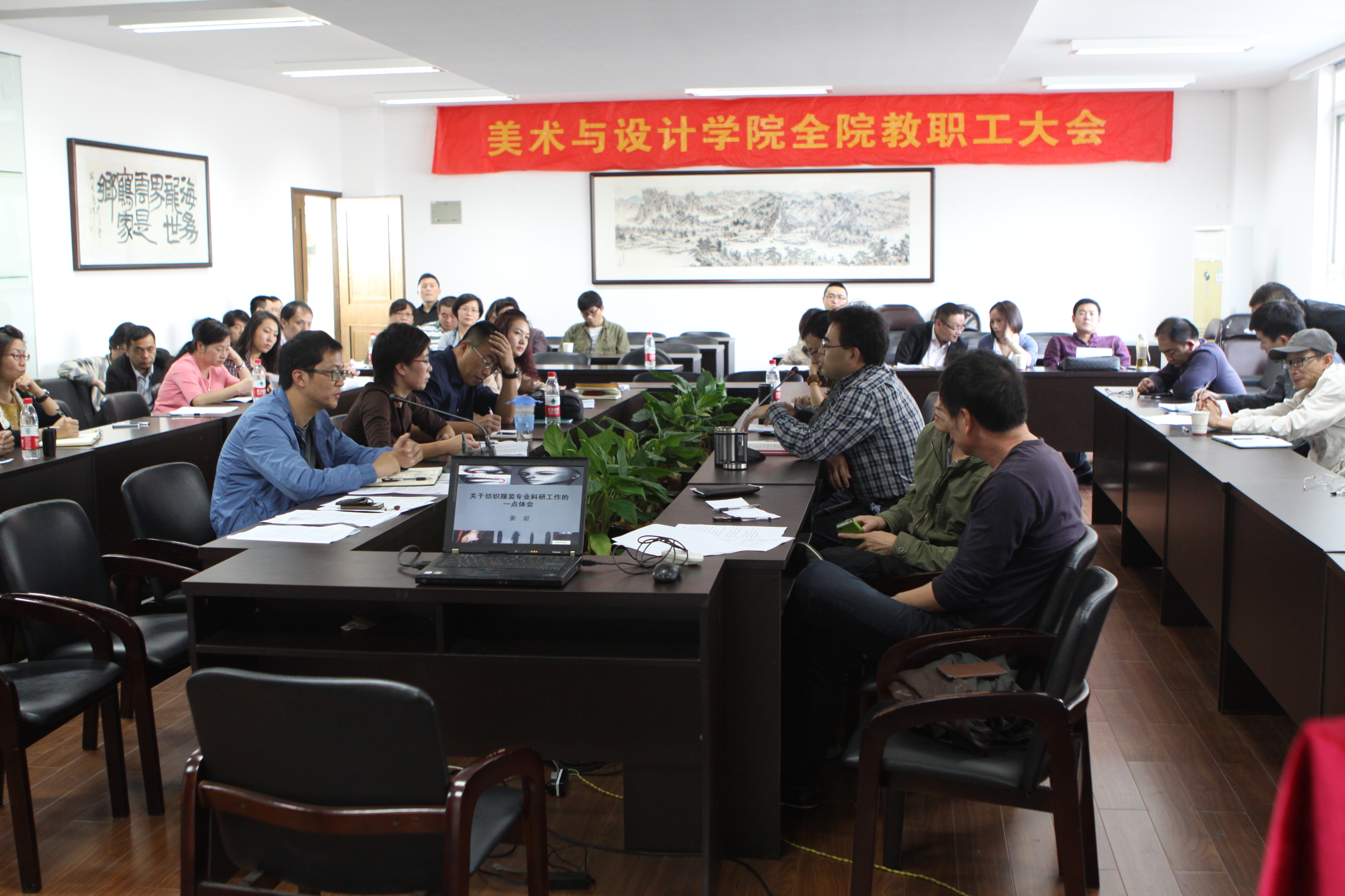 2013年11月6日,新葡官网在2B4001多功能厅召开本学期第二次全院教职工大会,学院领导李运河、蔡可群,杨振海及全院教职工出席了会议。会议由院党总支书记郑彩莲主持。 蔡可群副院长对本学期开学以来的教学情况做了总结,并就学生毕业作品展、学生毕业设计、实习写生和实践采风等具体工作做了安排,要求学院教师切实做好学期中期教学检查工作。 杨振海副书记对本学期的学生艺术展演活动、2013年大学生创新创业项目申报、大学生创业计划大赛及寝室导师工作等方面做了通报和说明。 李运河院长对学院近期整体工作做了总结,并对科研经费管理、科研工作及教学工作做了强调。科研方面,鼓励大家时刻紧跟研究动态、凝练研究方向,厚积薄发,不断提高学科科研水平。教学方工作方面,教师要有强烈的责任感,教学工作要更加制度化、规范化,鼓励教师多参加教师技能奖项的申报,切实提高师资队伍的水平。 党总支书记郑彩莲书记总结强调,学院将不断重视师德师风建设,更进一步做好凝聚力工程,完善制度化建设。希望广大教职工能增强责任意识,继续做好课堂教学管理工作及教研室工作;定期召开民主生活会,做好党内民主工作;做好 “赛季风”等学院品牌活动,全院上下凝心聚力、共生共荣,使学院更加团结和充满生机,为学院争创更好更辉煌的成绩而努力。 校纪委曾园同志就3003新葡官方网站校务院务公开工作向全院教师做了问卷调研。 会后,姜岩和张晓剑两位老师就科研经验与全体教师作了经验分享。