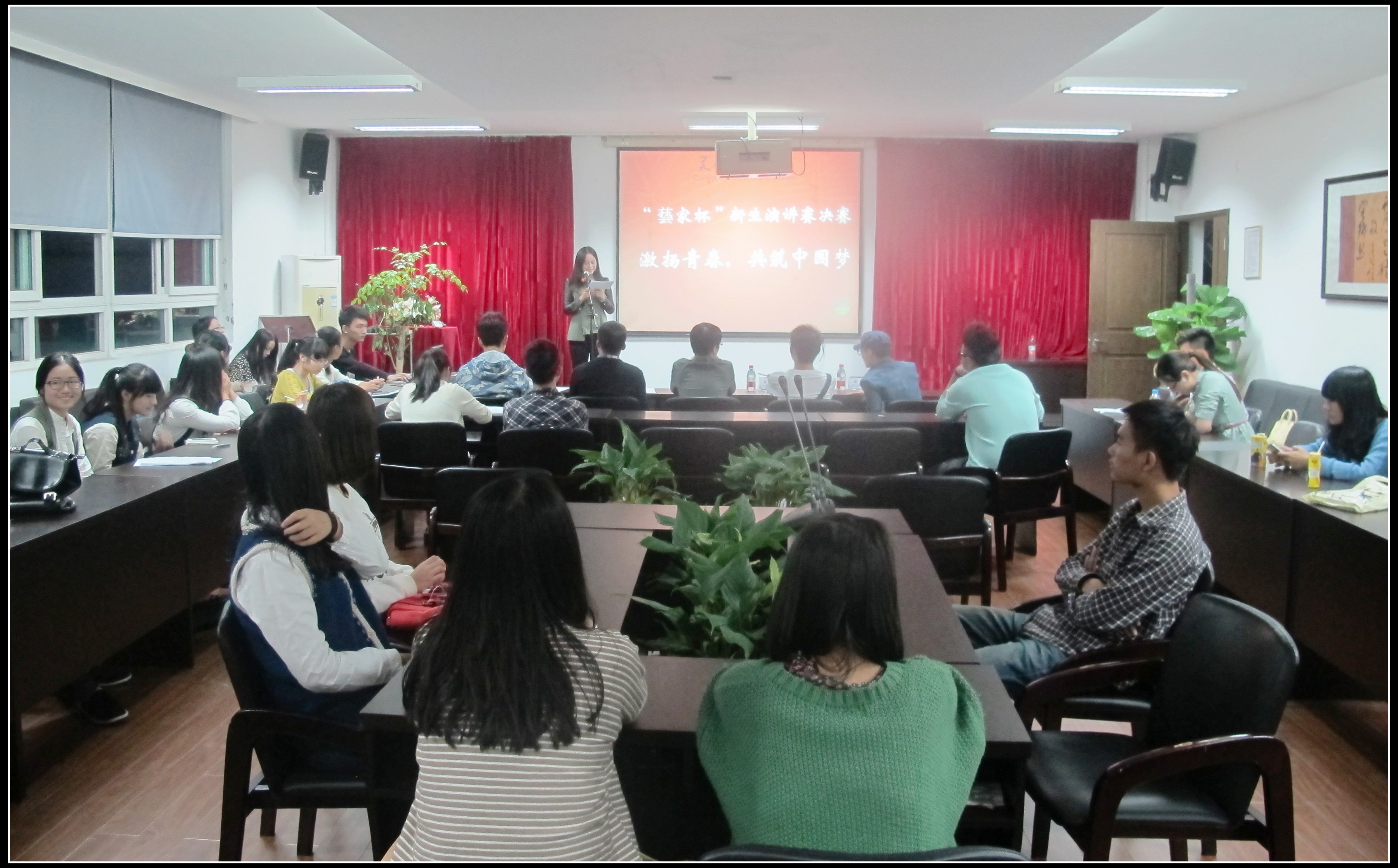 10月16日晚六点,3003新葡官方网站2013级新生演讲赛决赛在2B4001顺利举行。校主持队队长谭博,校主持队优秀主持张清泉、刘志远,人文学院研究生贺书伟,3003新葡官方网站研究生吕诚担任本场比赛评委。出席本场决赛的还有院学生会主席团成员及部分2013级新生。 本次大赛以“激扬青春,共筑中国梦”为主题,号召广大新生朋友们用梦想诠释青春,用青春实现梦想。大赛由3003新葡官方网站团委学生会主办,由学风纪检部和创业实践部承办,由艺家美术用品协办。 经过初赛的选拔,12名选手脱颖而出,挺进决赛。他们在讲台上热情演讲,抒发自己对“中国梦”、“青春梦”的看法,表达自己立志报国的信心与决心。9号选手高洁宁批判西湖游客乱扔垃圾的不文明现象,提出了自己“我的梦里,祖国一派山清水秀!”的梦想。12号选手叶海勇则展现了对“梦想坚持”的思考,讲述了“志向是梦想的升华”的励志故事。11号选手张家豪呼吁青年朋友们把握好自己的青春筹码,努力学习,实现自己的“青春梦”,才能推进“中国梦”的实现……各位选手见智见仁,慷慨陈词,展现了美院新一届的青春活力与激情。 比赛环节全部结束后,人文学院贺书伟对比赛进行了点评。对于选手们在解题上的突破,他对大家表示了肯定,并给出了宝贵建议,希望选手们在演讲过程中表现出的自信、感染力能够更加完善。他也期待选手们能将演讲的风采带进生活。 缤纷中国梦,我辈青年携手共筑;华美青春秀,美院学子各展风采。最终,13服工班刘子媛以精彩的演讲和强烈的舞台感染力夺得桂冠。 附获奖名单: 一等奖:刘子媛 二等奖:叶静文、叶海勇 三等奖:董冰红、黄纯、张开源、张家豪